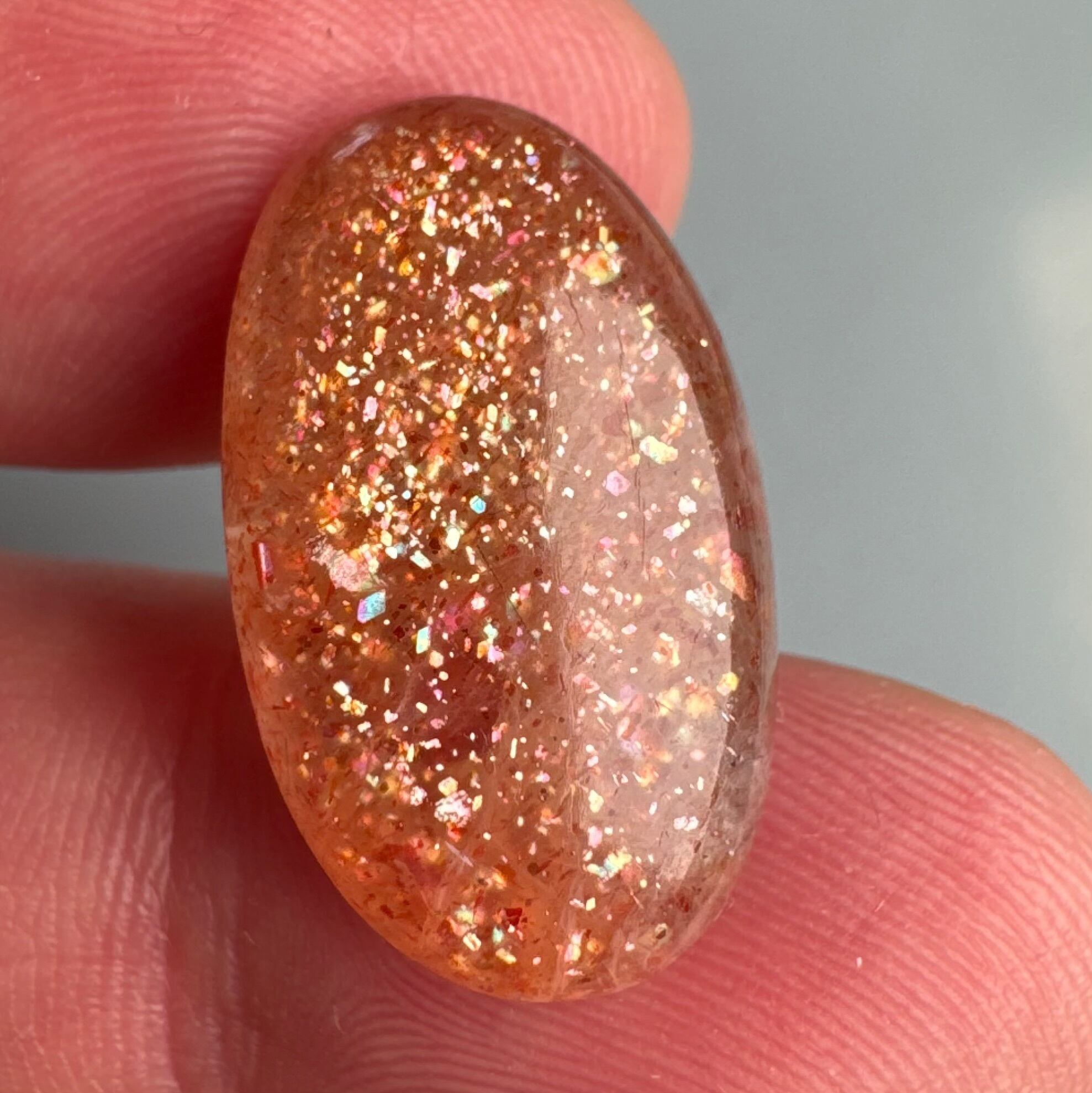 このギラギラとしたアベンチュレッセンスは、まさに高品質サンストーンならではの魅力です。