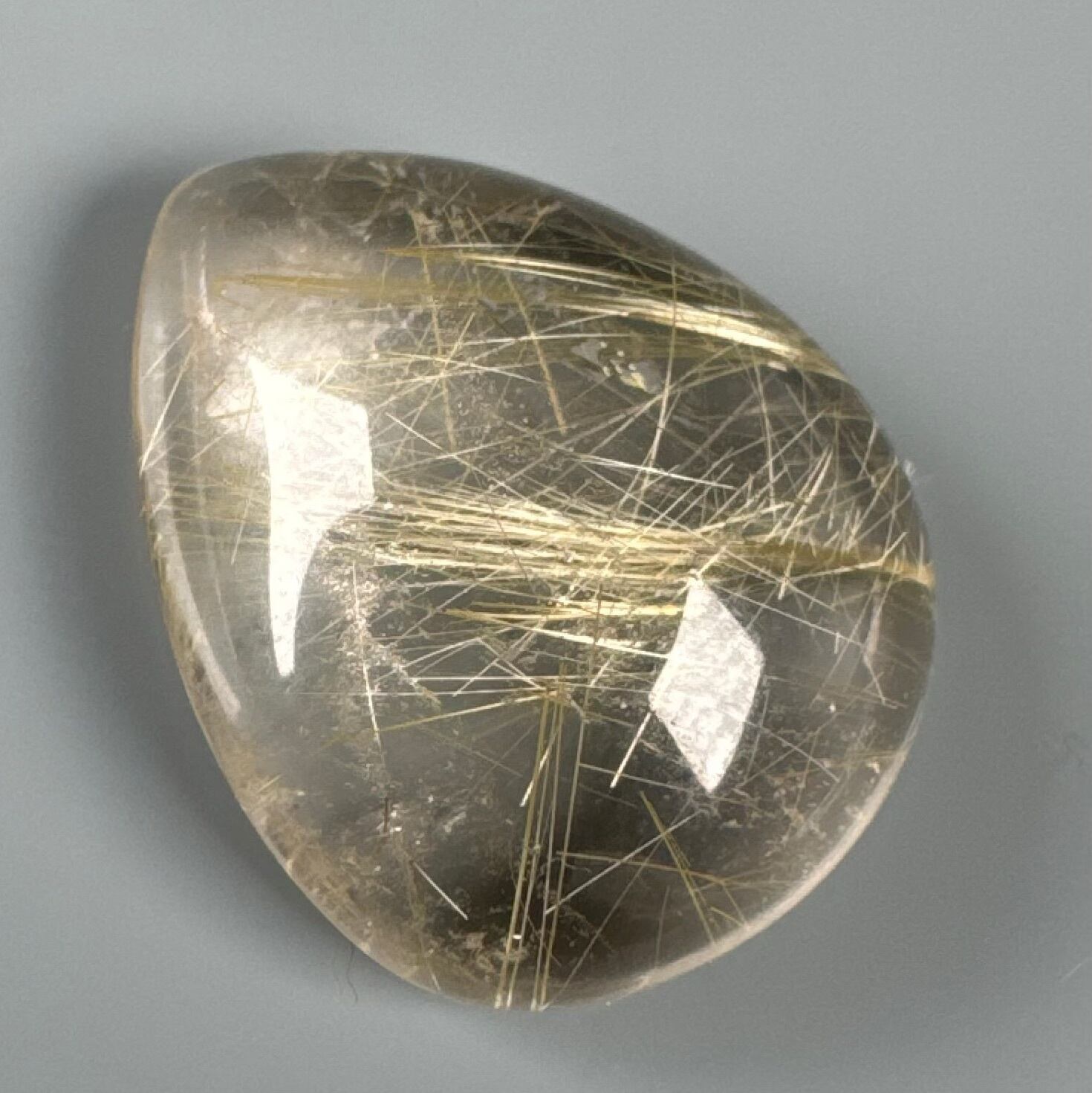 透明度の高い水晶の中に、控えめながらも美しく輝くルチルの針が見られるルースです。