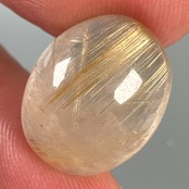 透明度の高い水晶の中に、控えめながらも美しく輝くルチルの針が見られるルースです。