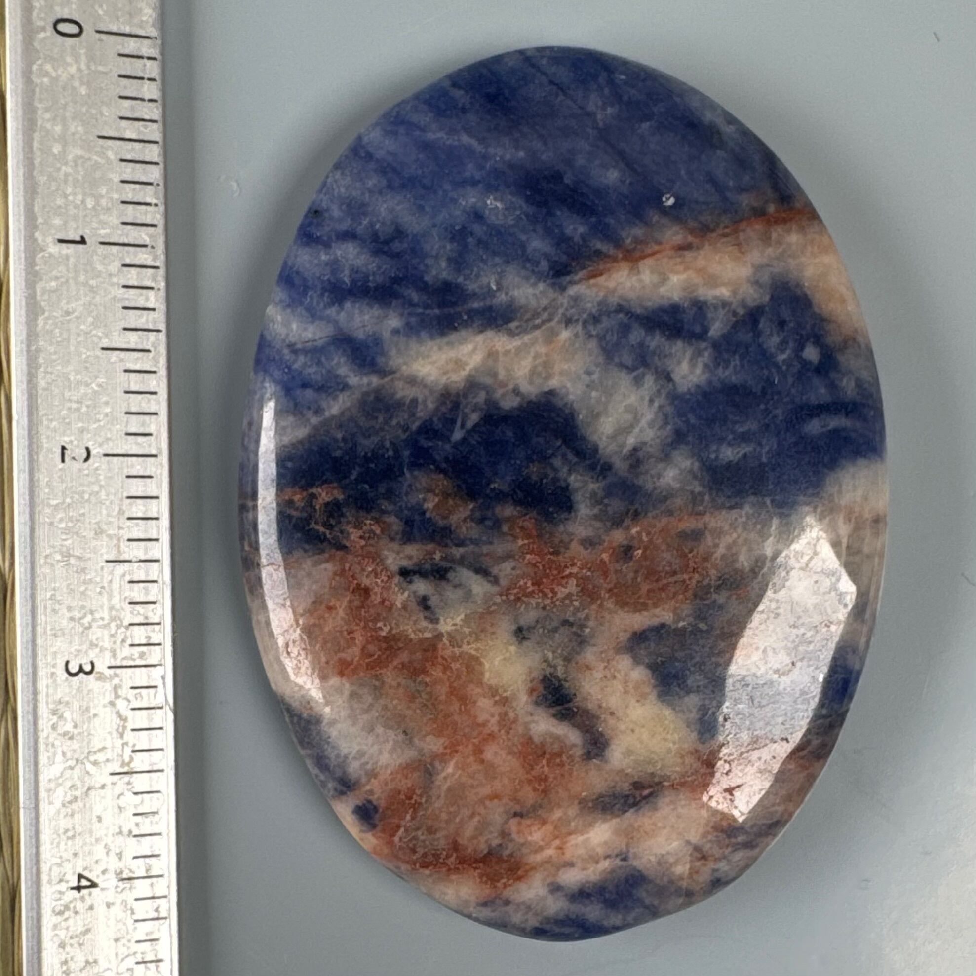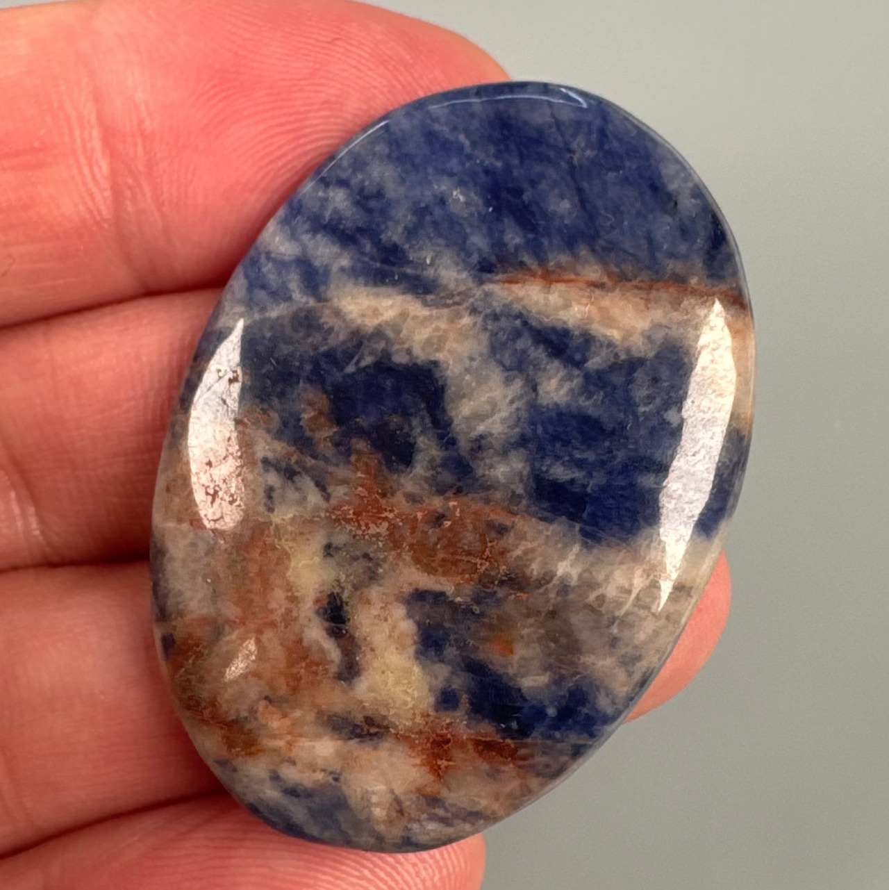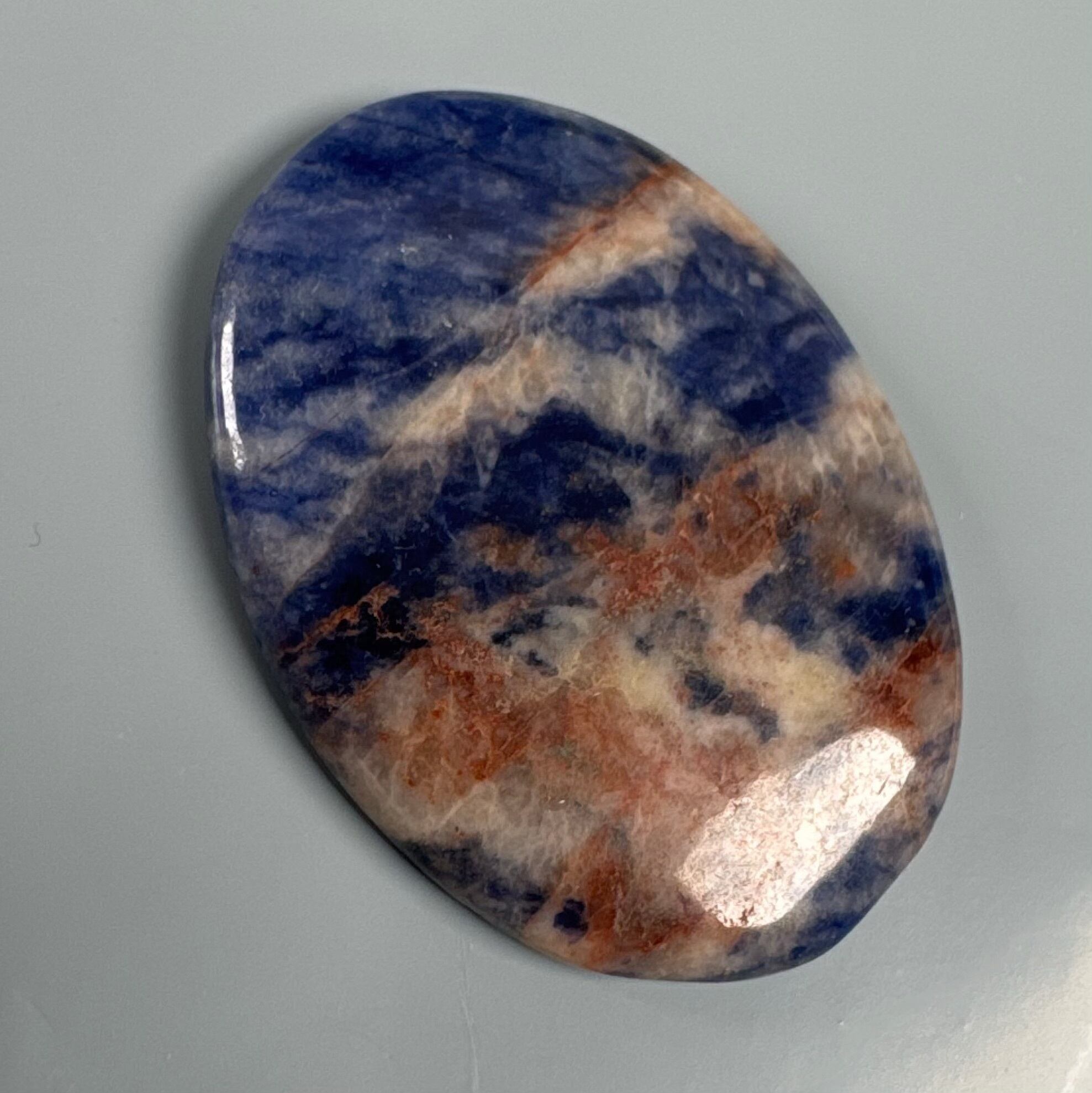 赤い大地、青い空、印象的な絵画のようなルースです。