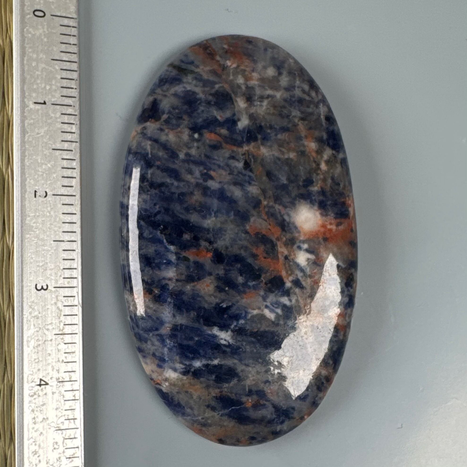 赤いゼオライト、青いソーダライト、印象的な絵画のようなルースです。