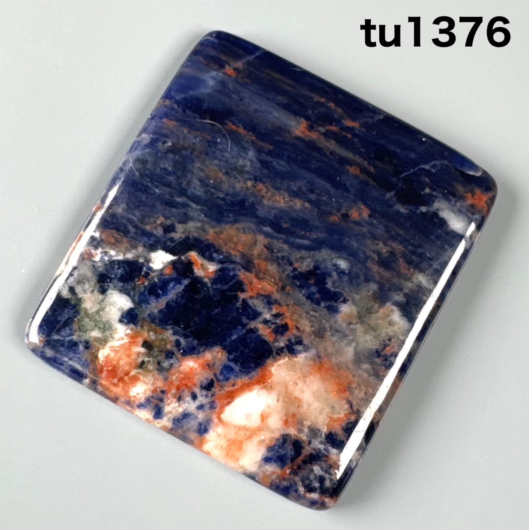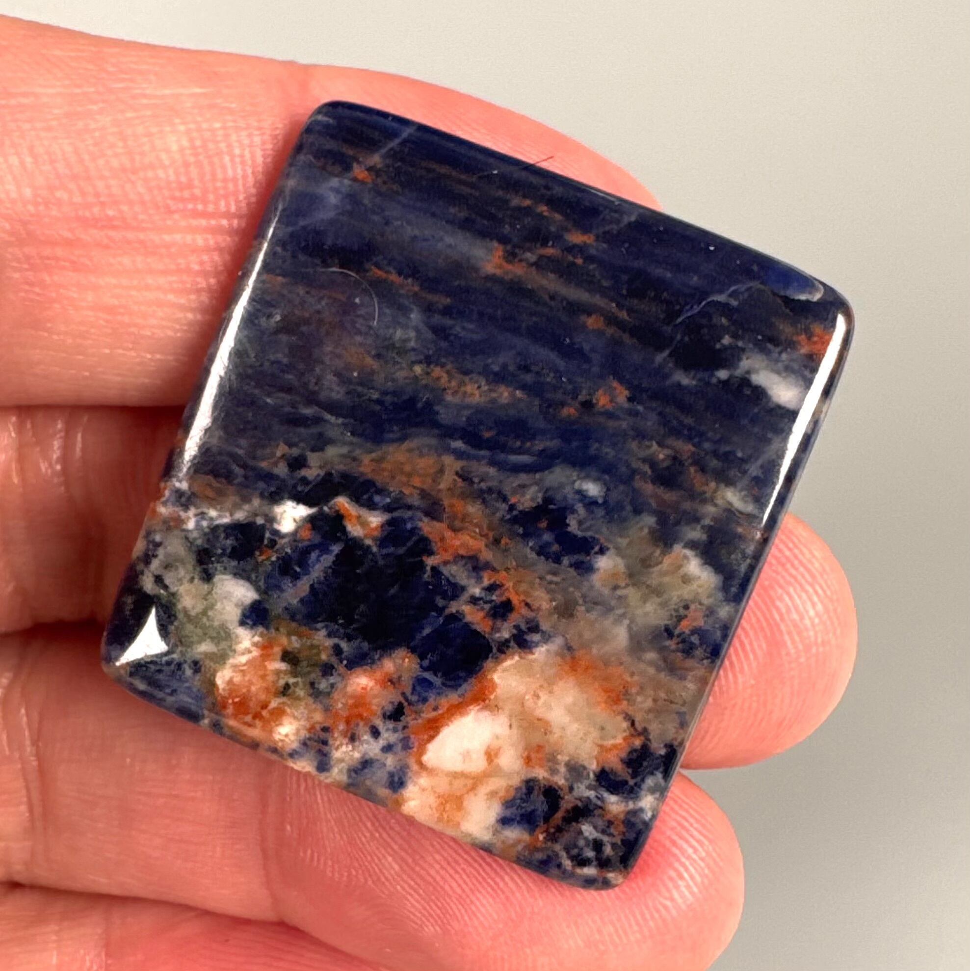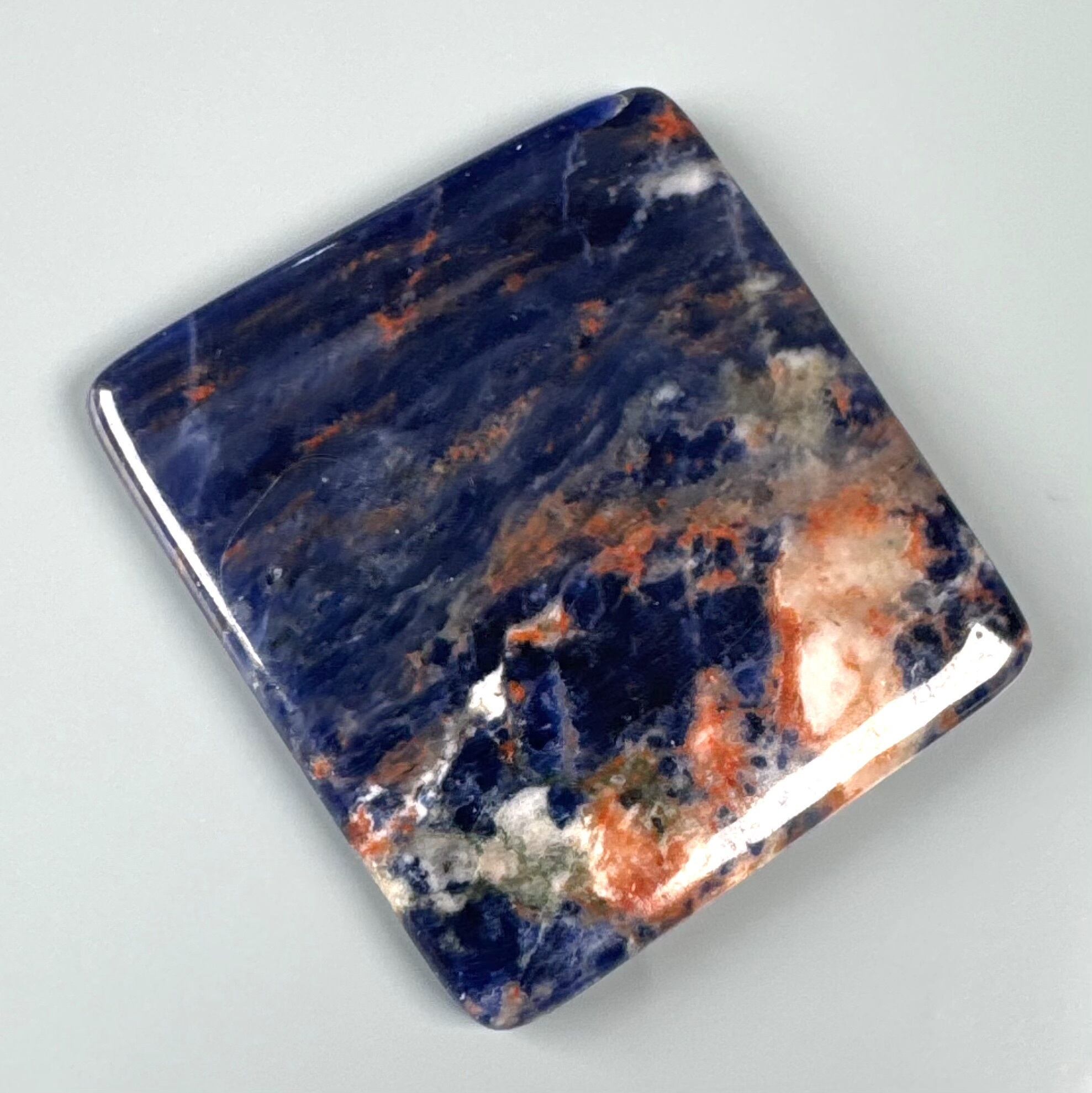 赤いゼオライト、青いソーダライト、印象的な絵画のようなルースです。