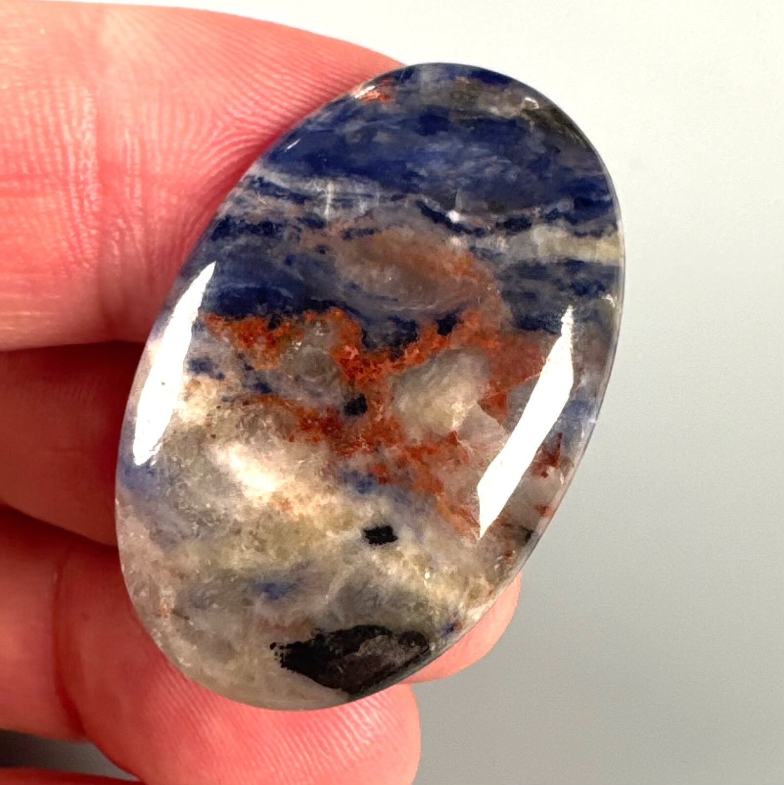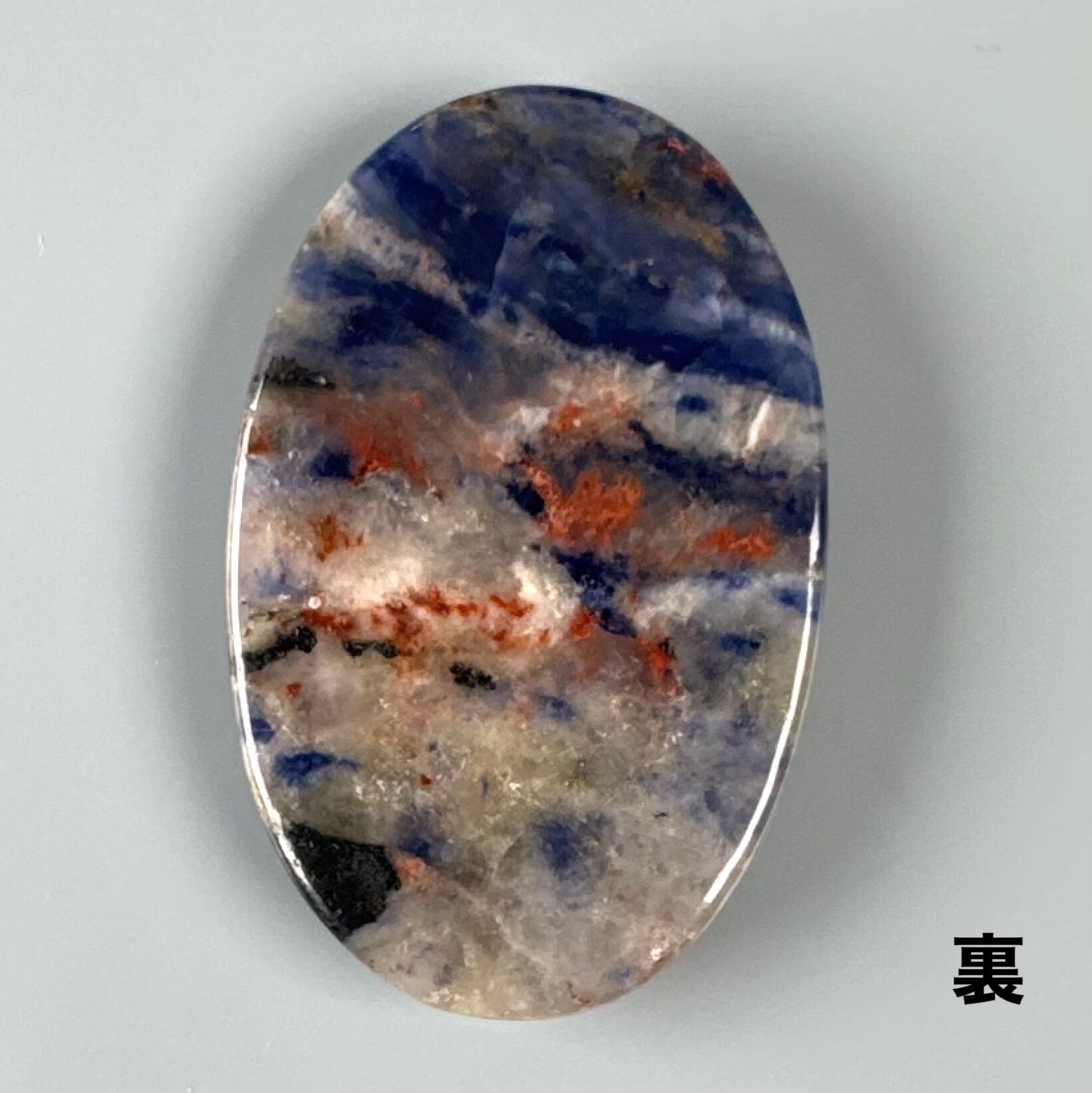 赤いゼオライト、青いソーダライト、印象的な絵画のようなルースです。