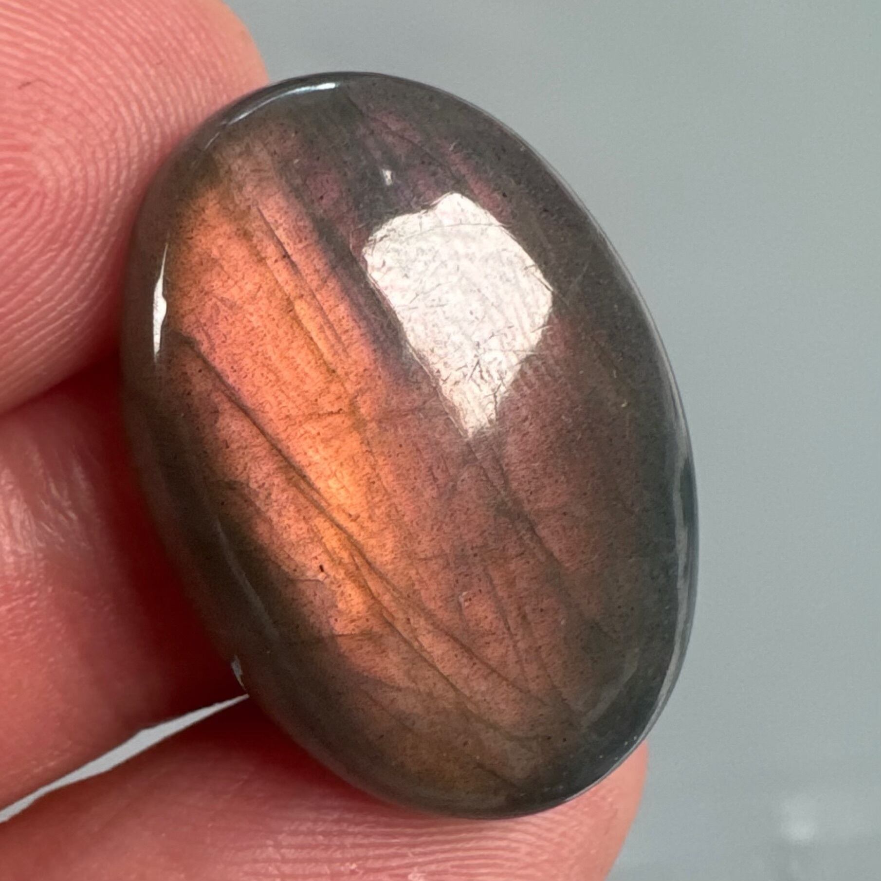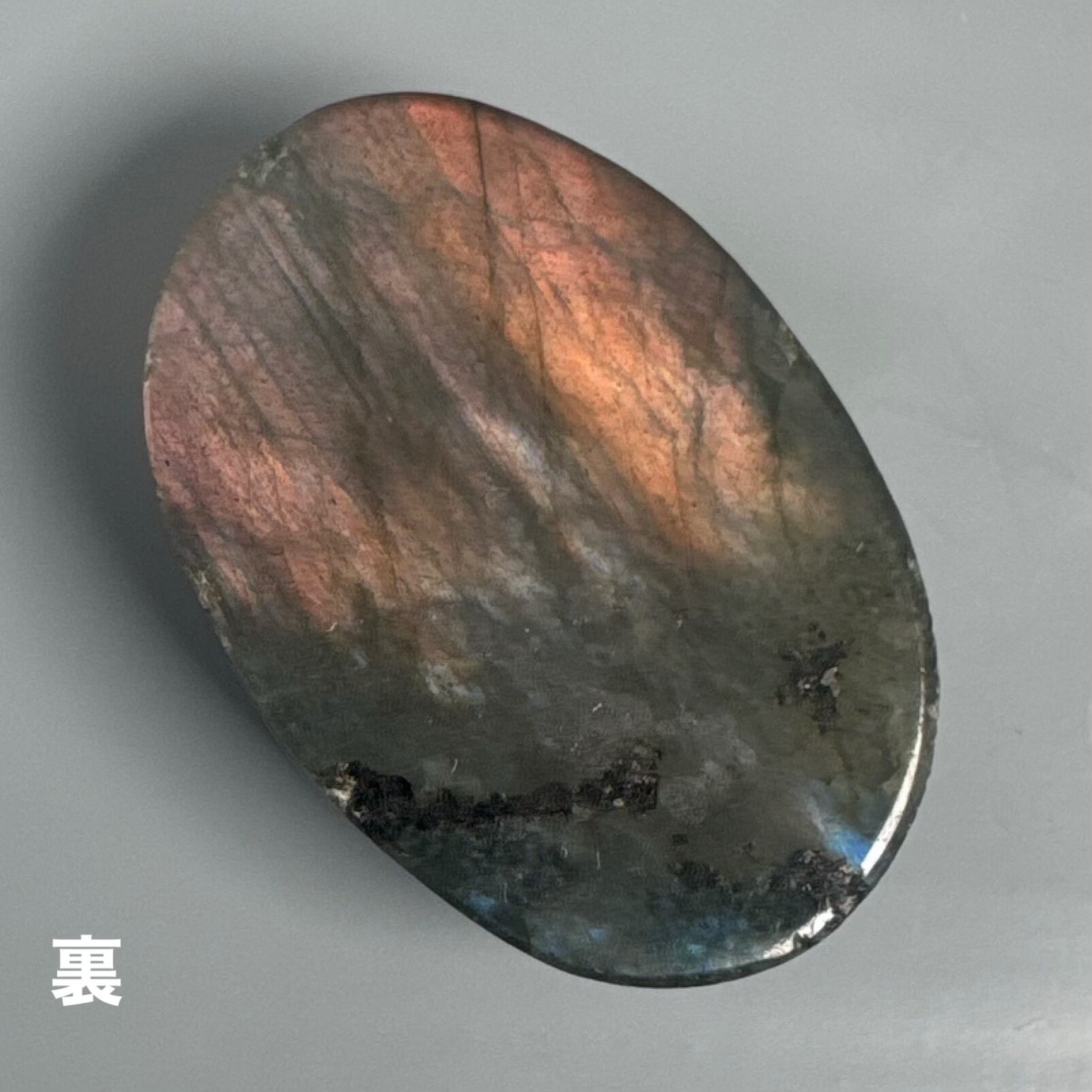 ラブラドライトの中でも特に珍しい、ピンクシラーがふんわりと浮かび上がる特別なルース。