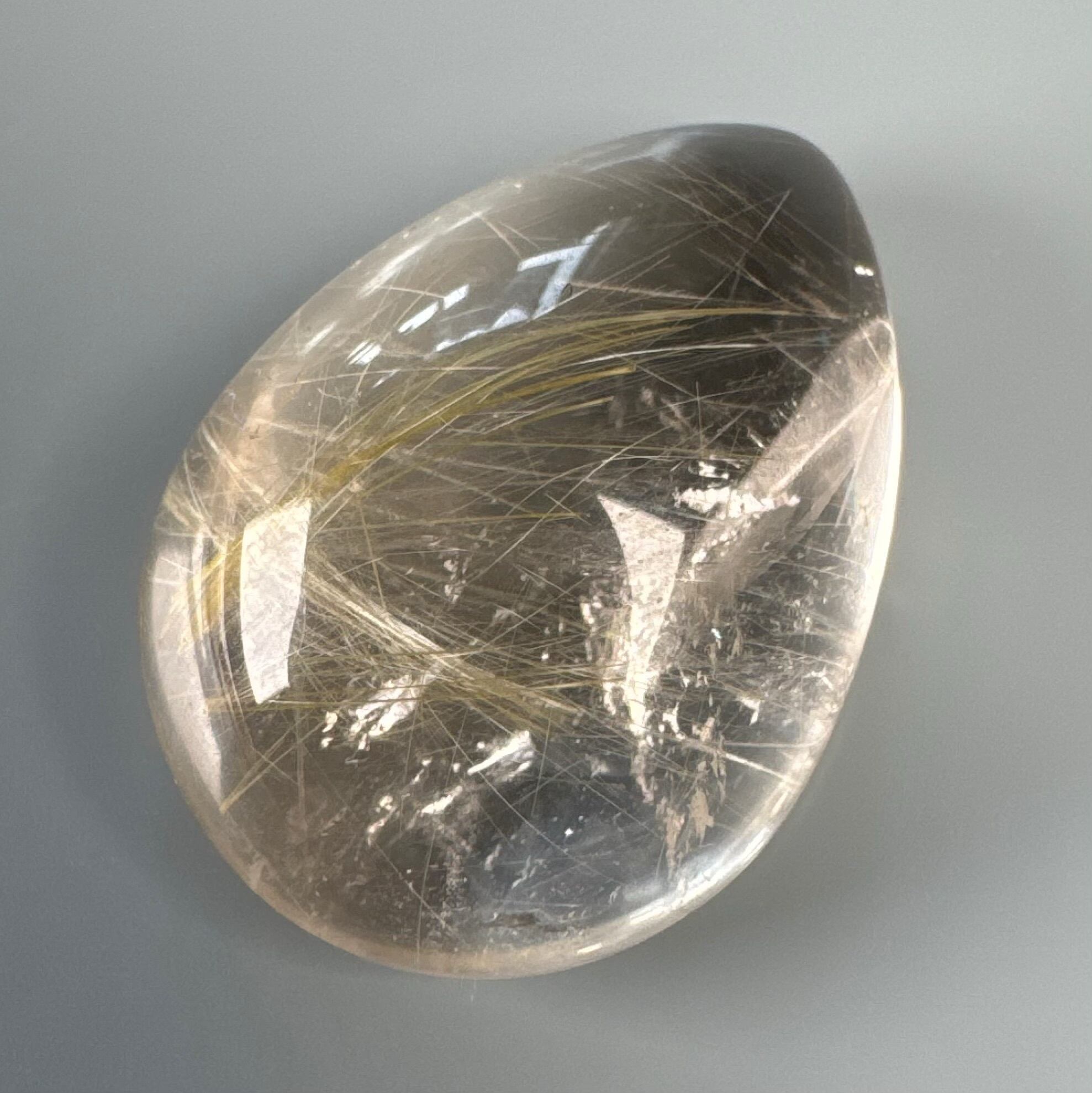 透明度の高い水晶の中に、控えめながらも美しく輝くルチルの針が見られるルースです。