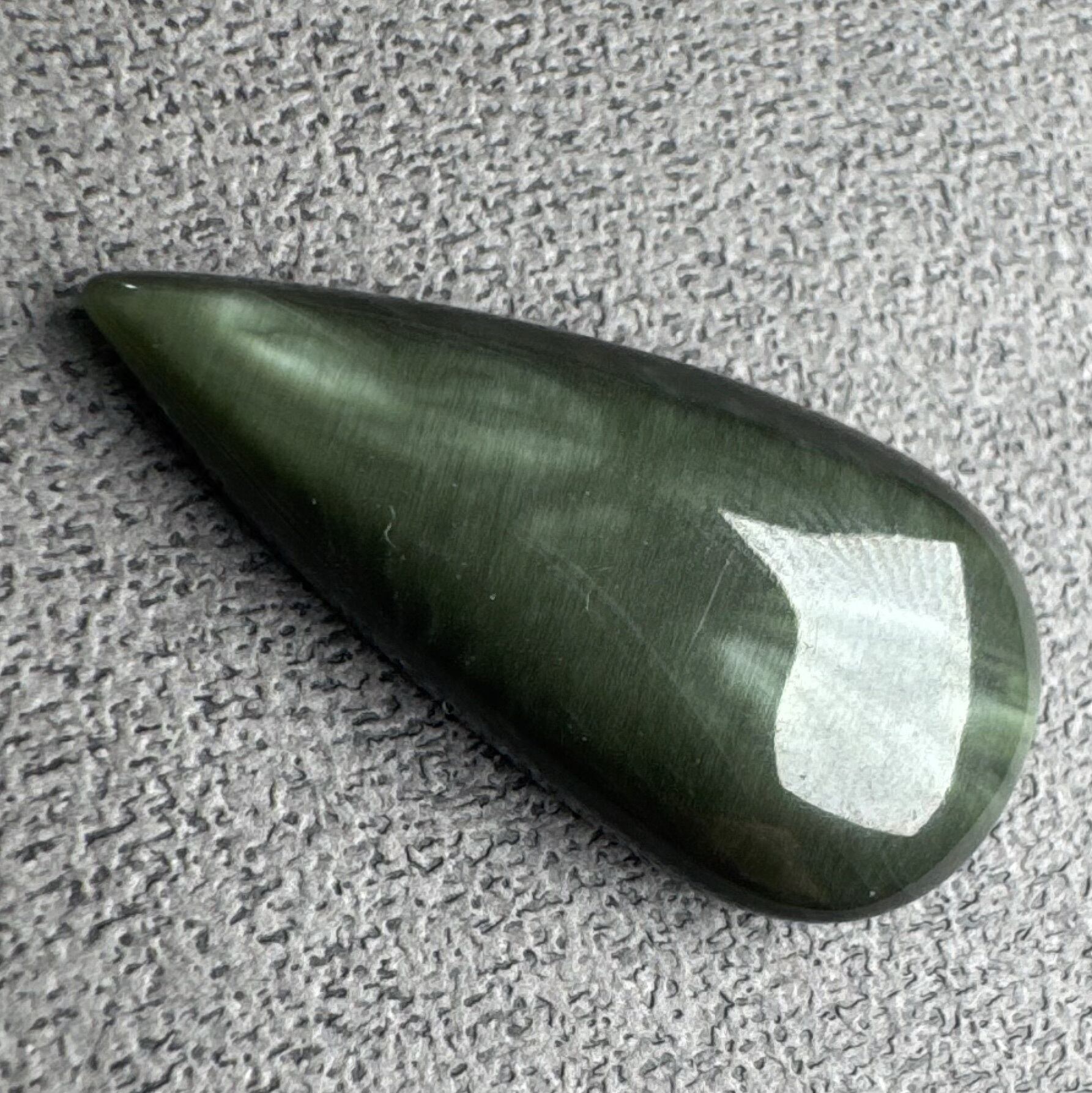 光を受けて石の表面に細い光の筋が浮かび上がる“シャトヤンシー効果”で知られています。
