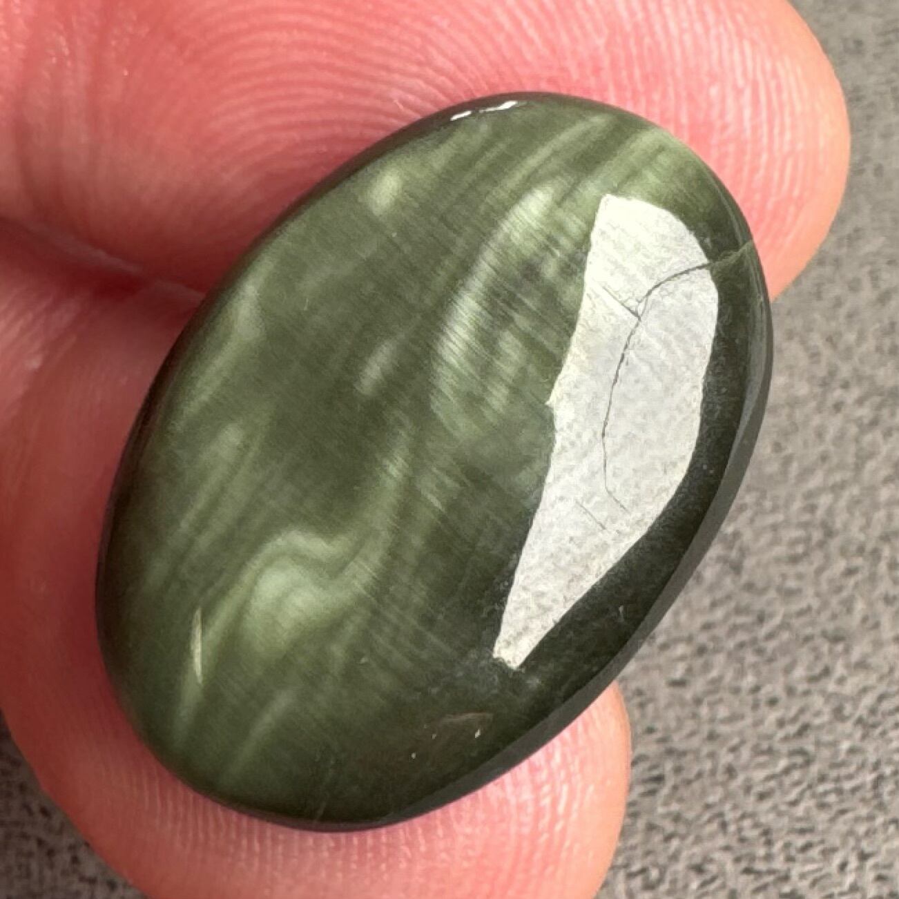 光を受けて石の表面に細い光の筋が浮かび上がる“シャトヤンシー効果”で知られています。