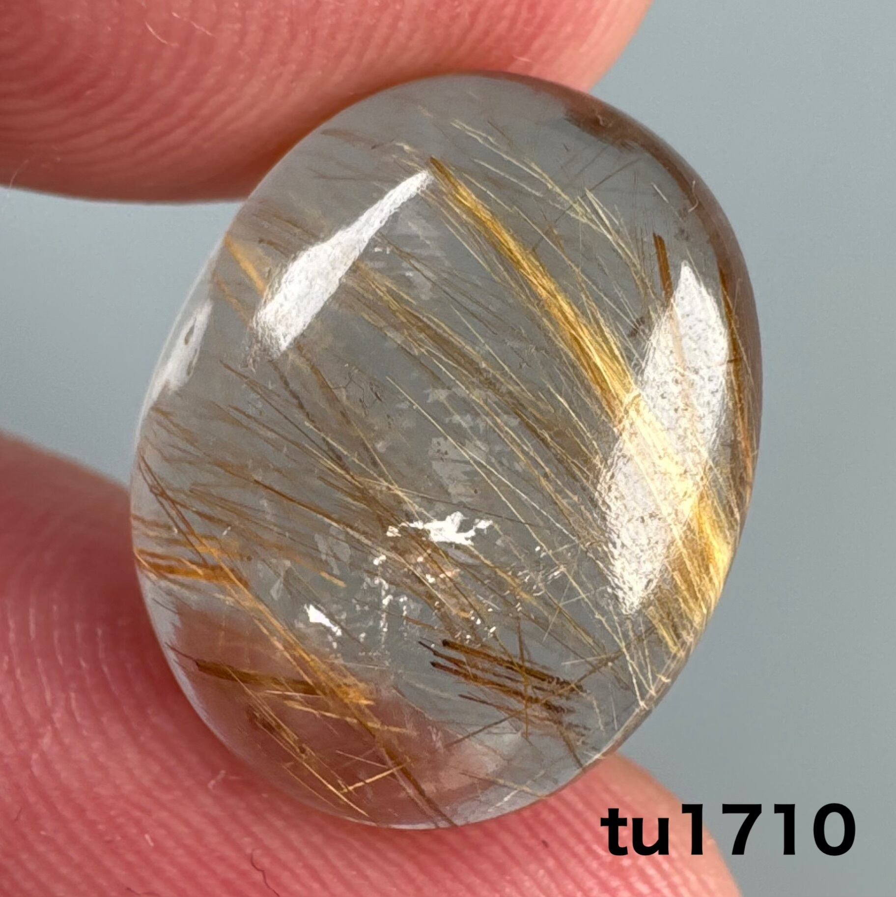 透明度の高い水晶の中に、控えめながらも美しく輝くルチルの針が見られるルースです。