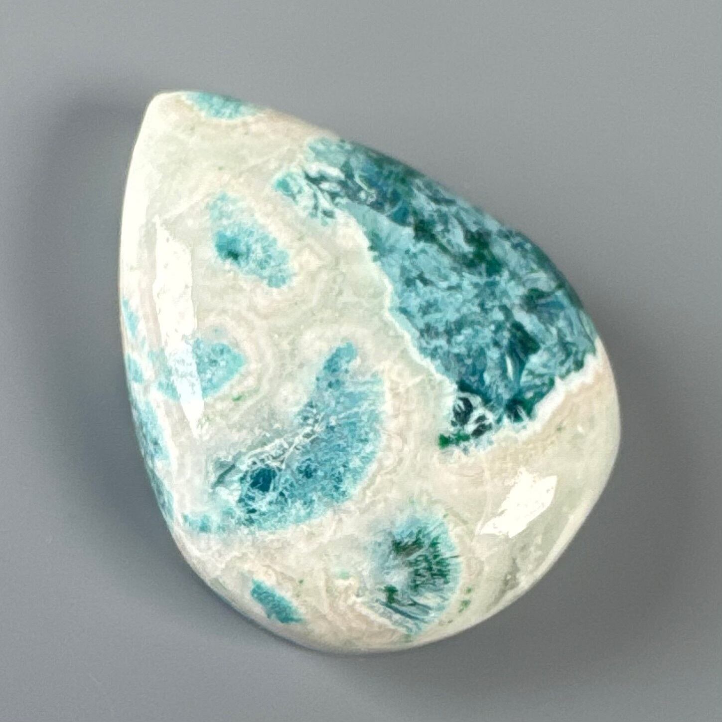 まるで厚い雲から覗き見る青空のような、穏やかで心癒される天然石です。