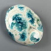 白く優しい石英の中に、淡いブルーやグリーンの模様が浮かぶホワイトクリソコラ。