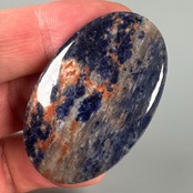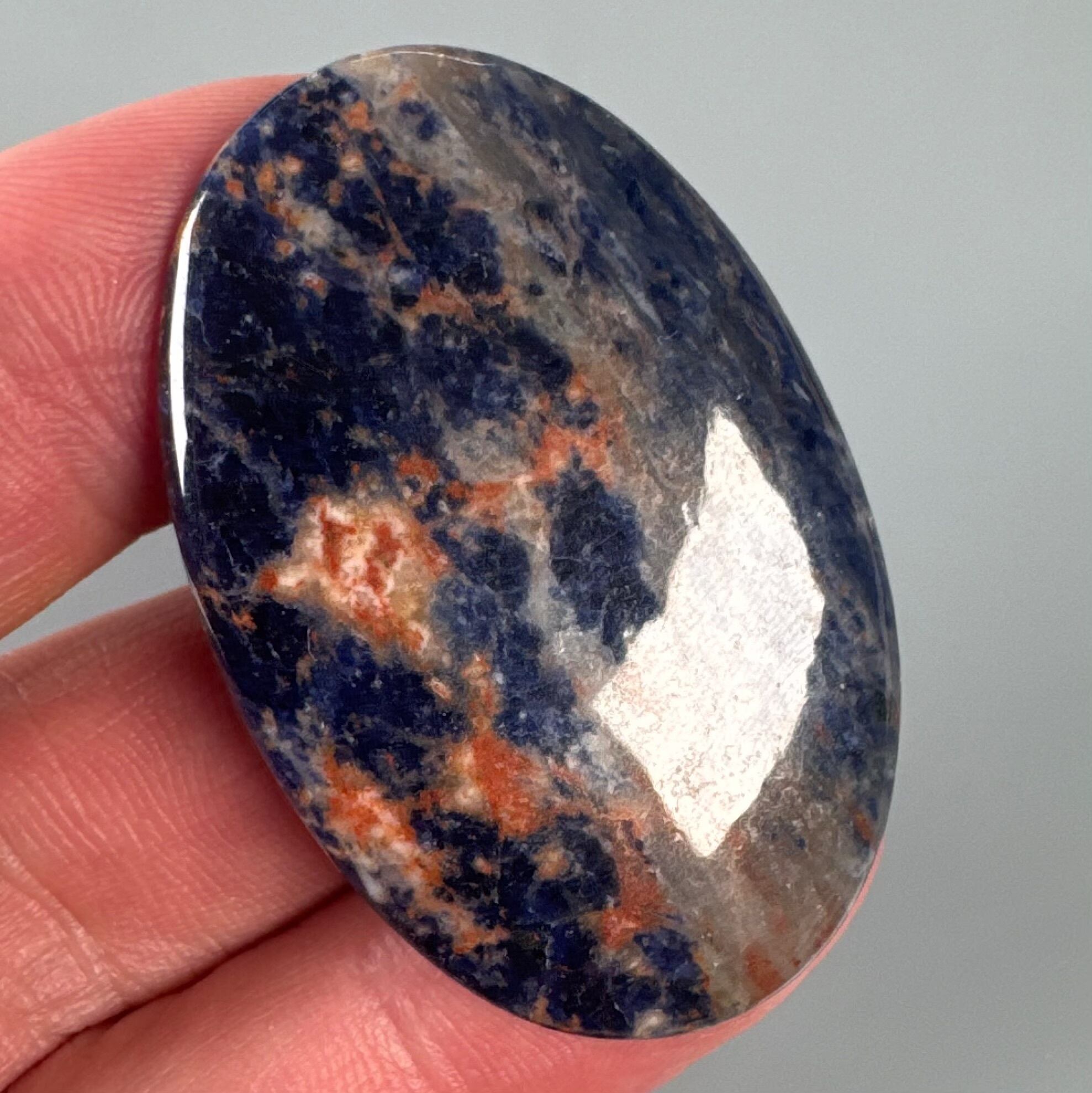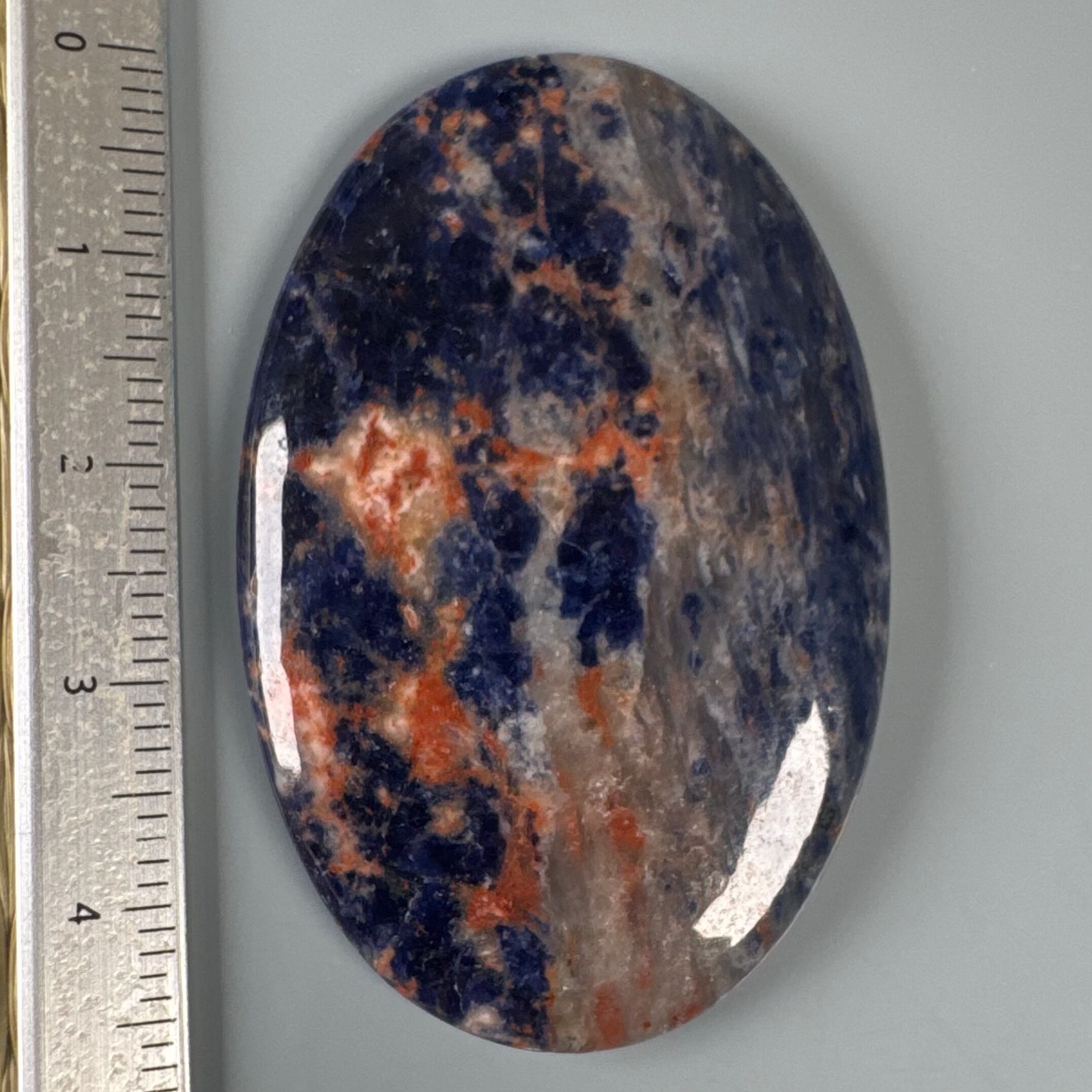 赤いゼオライト、青いソーダライト、印象的な絵画のようなルースです。