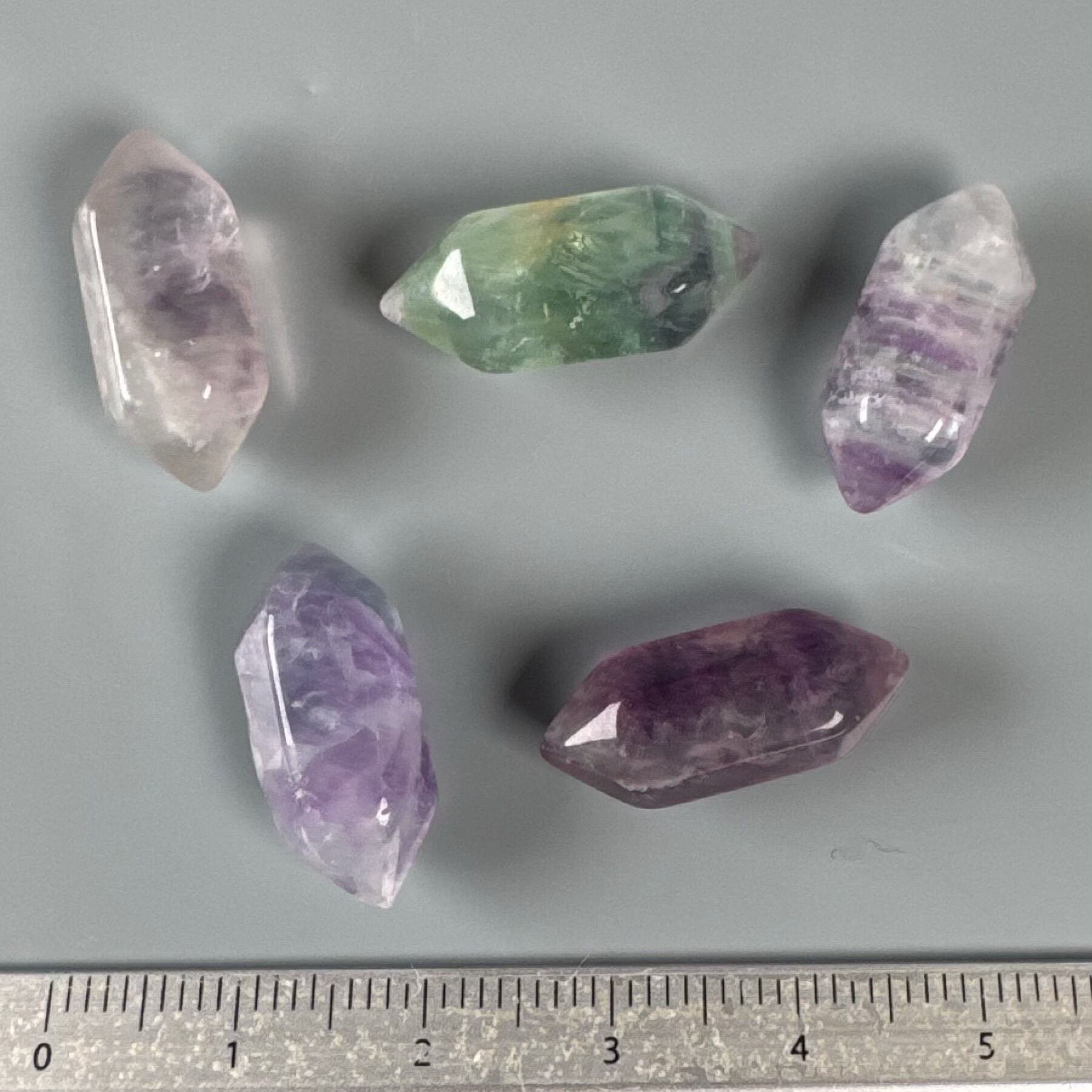 ヒーリングに溢れたフローライトのダブルポイント状にポリッシュ加工された石たち