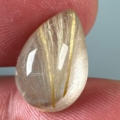 透明度の高い水晶の中に、控えめながらも美しく輝くルチルの針が見られるルースです。