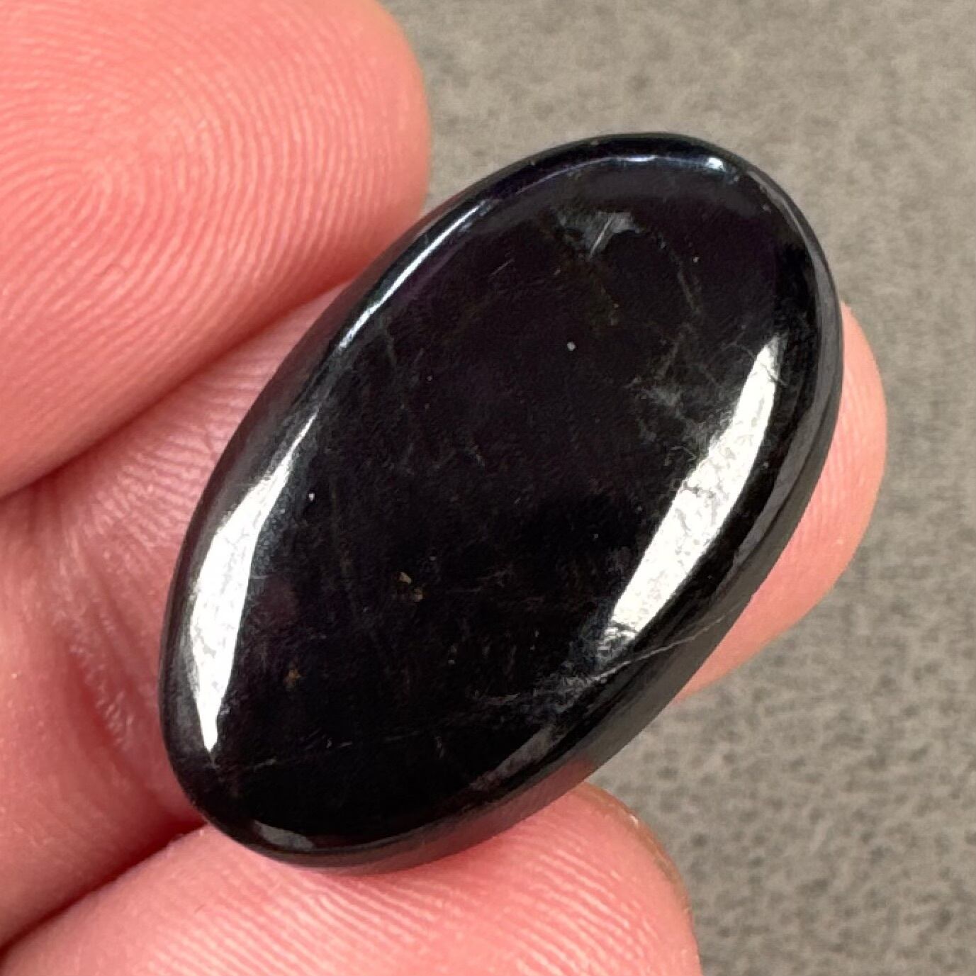 一見黒い石に見え、光の加減で紫色が確認できます。