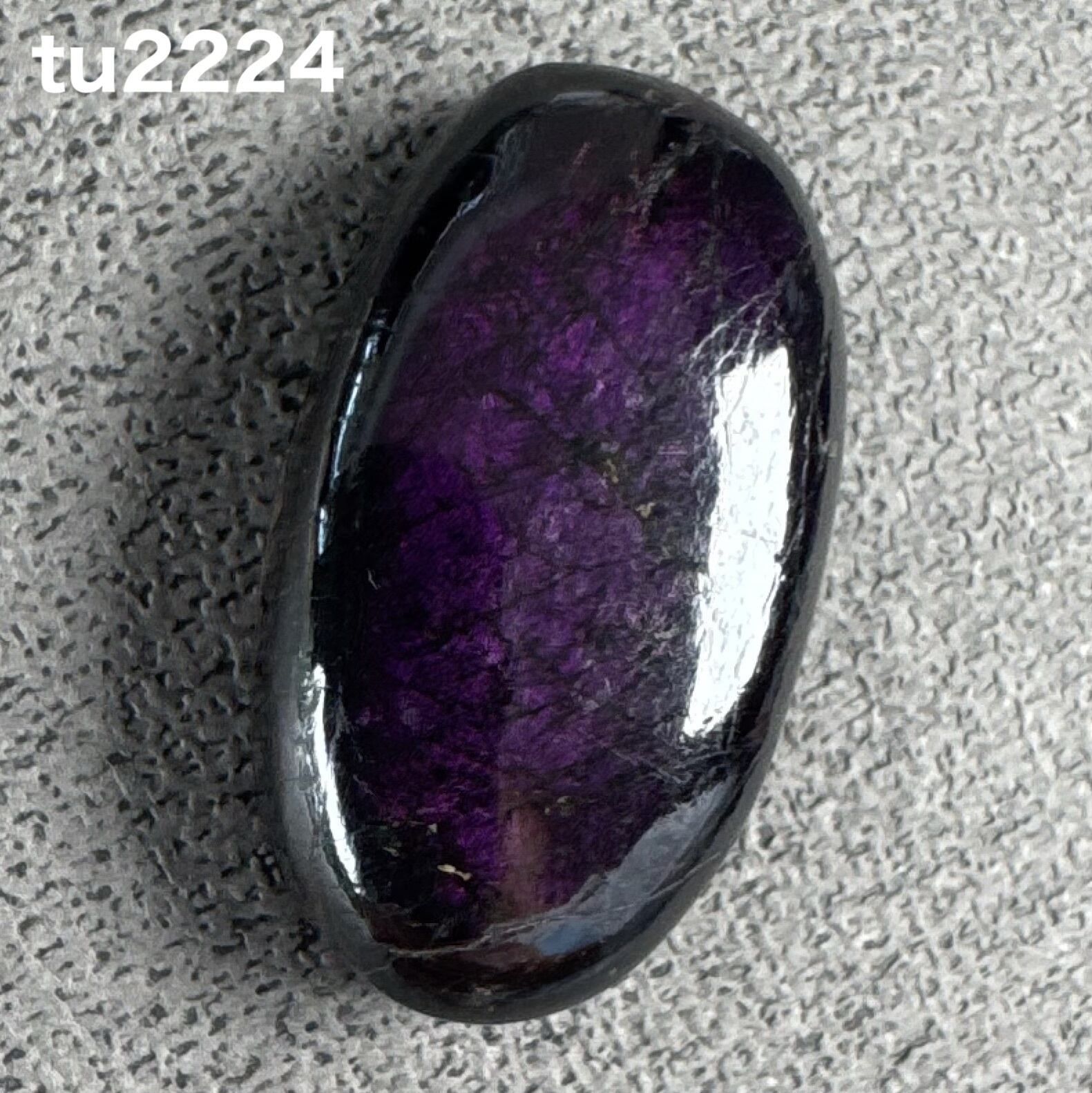 一見黒い石に見え、光の加減で紫色が確認できます。