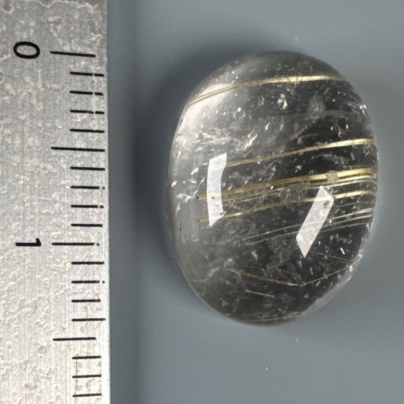 透明度の高い水晶の中に、控えめながらも美しく輝くルチルの針が見られるルースです。