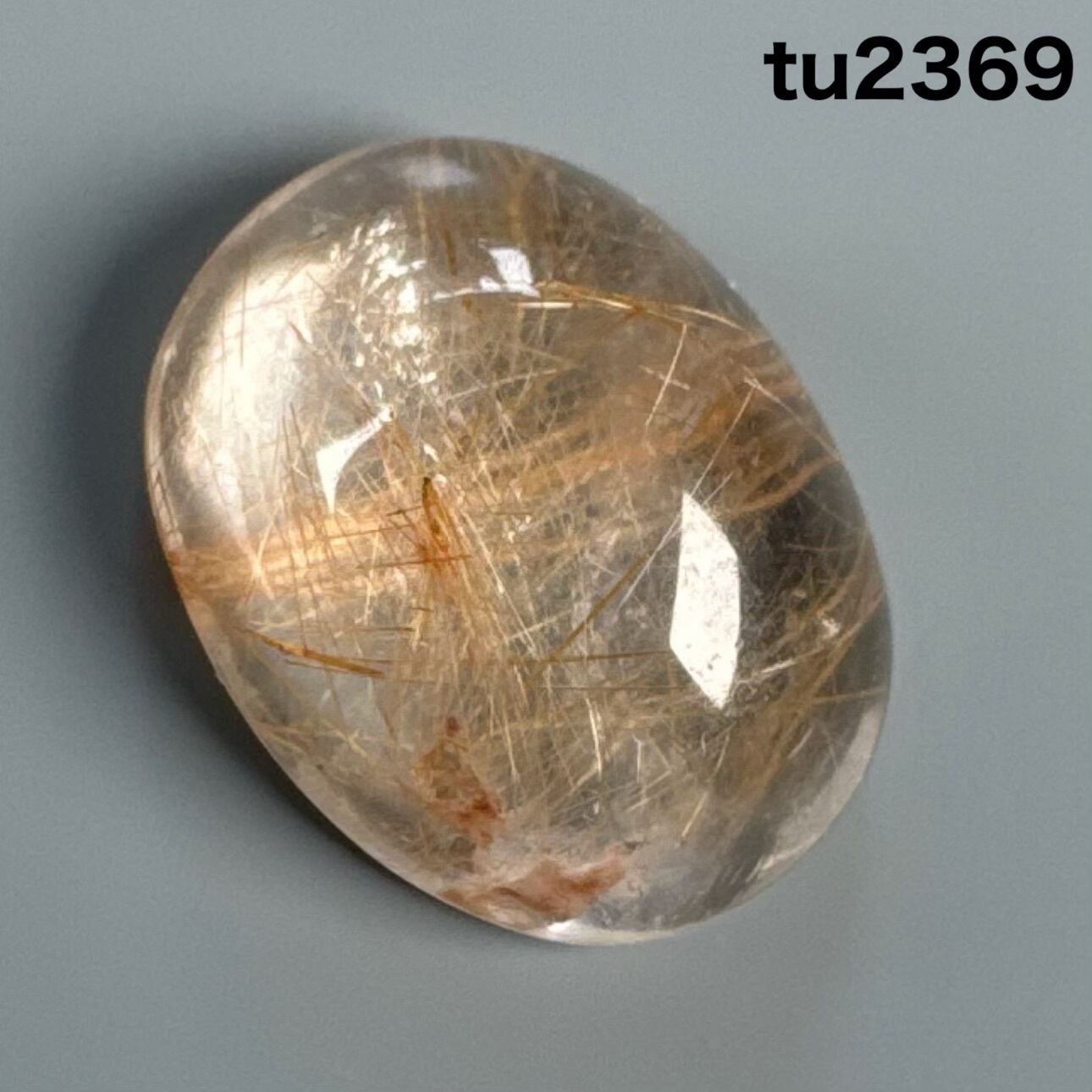 透明度の高い水晶の中に、控えめながらも美しく輝くルチルの針が見られるルースです。
