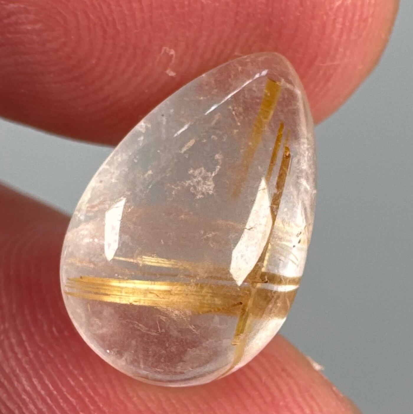 透明度の高い水晶の中に、控えめながらも美しく輝くルチルの針が見られるルースです。
