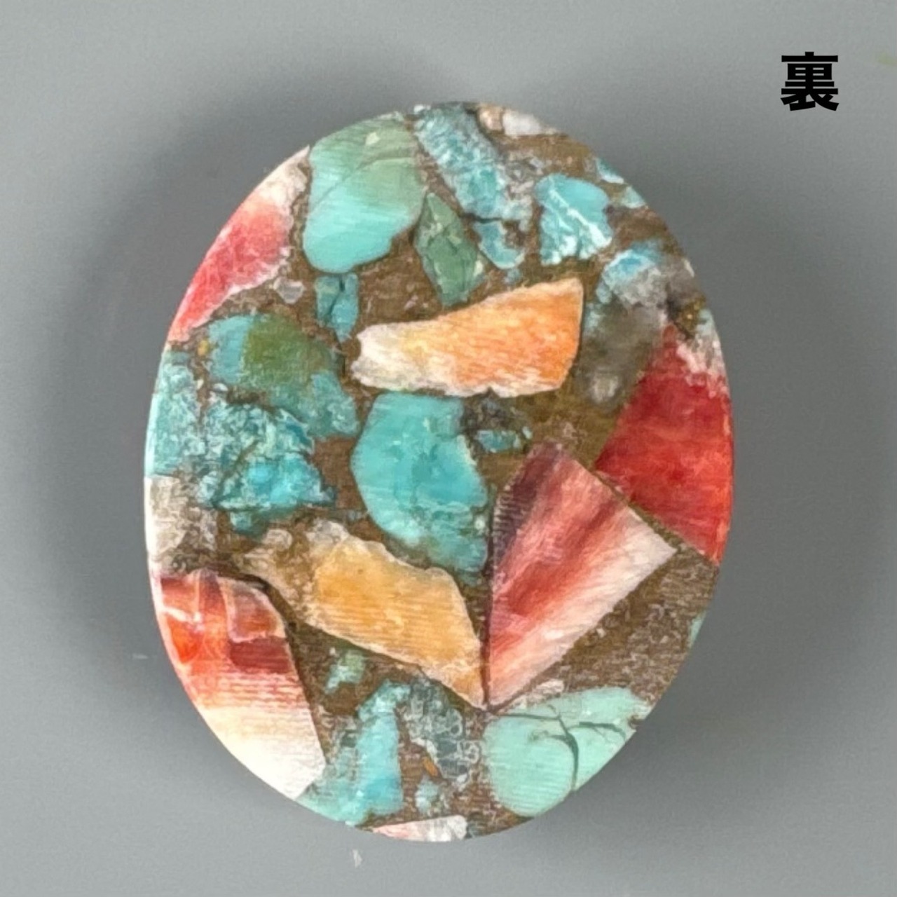 オイスターターコイズは、ターコイズの破片と牡蠣の貝殻、銅(カッパー)を組み合わせ、再構成された特別なストーン。