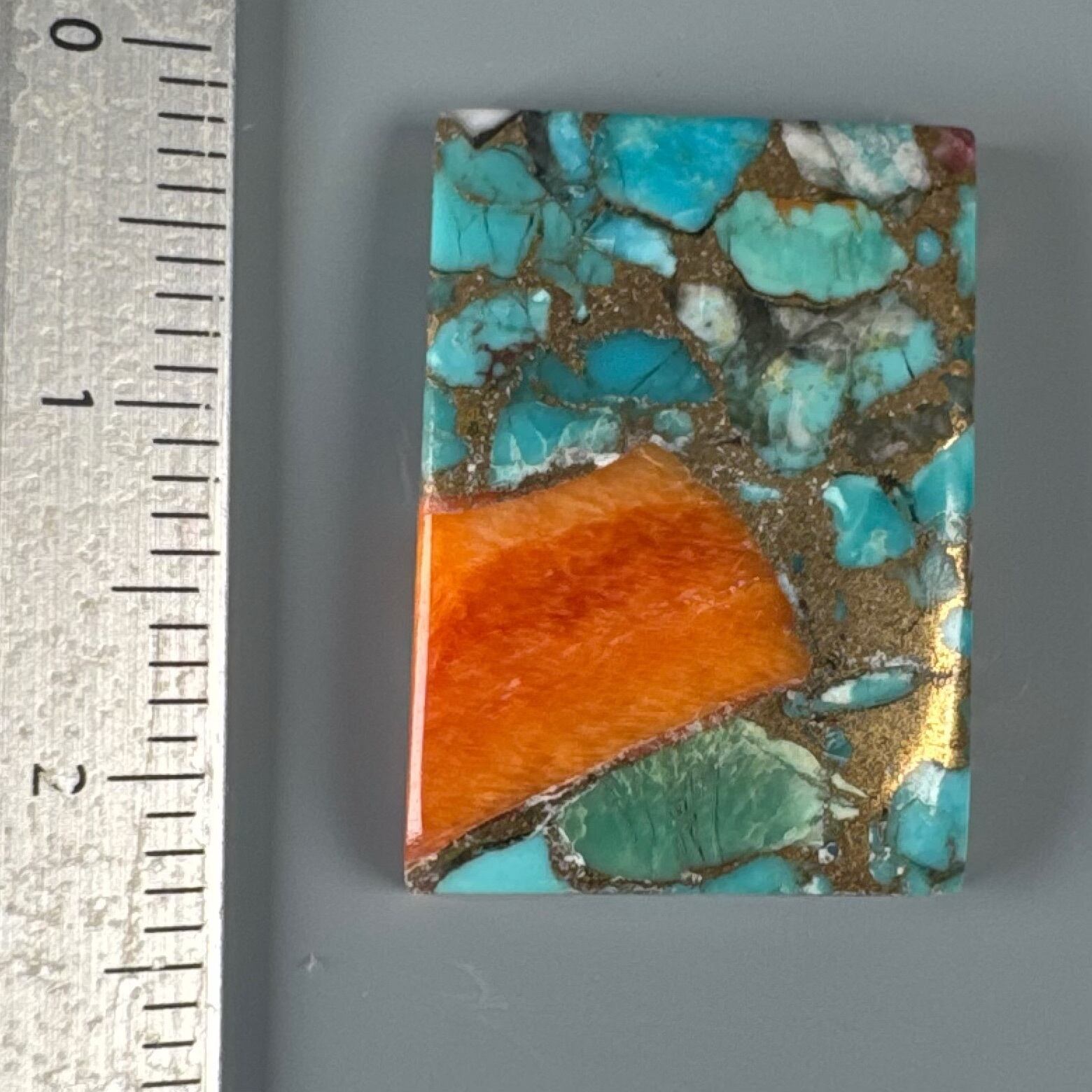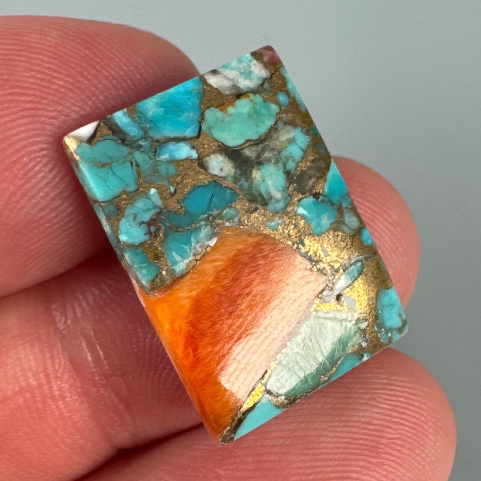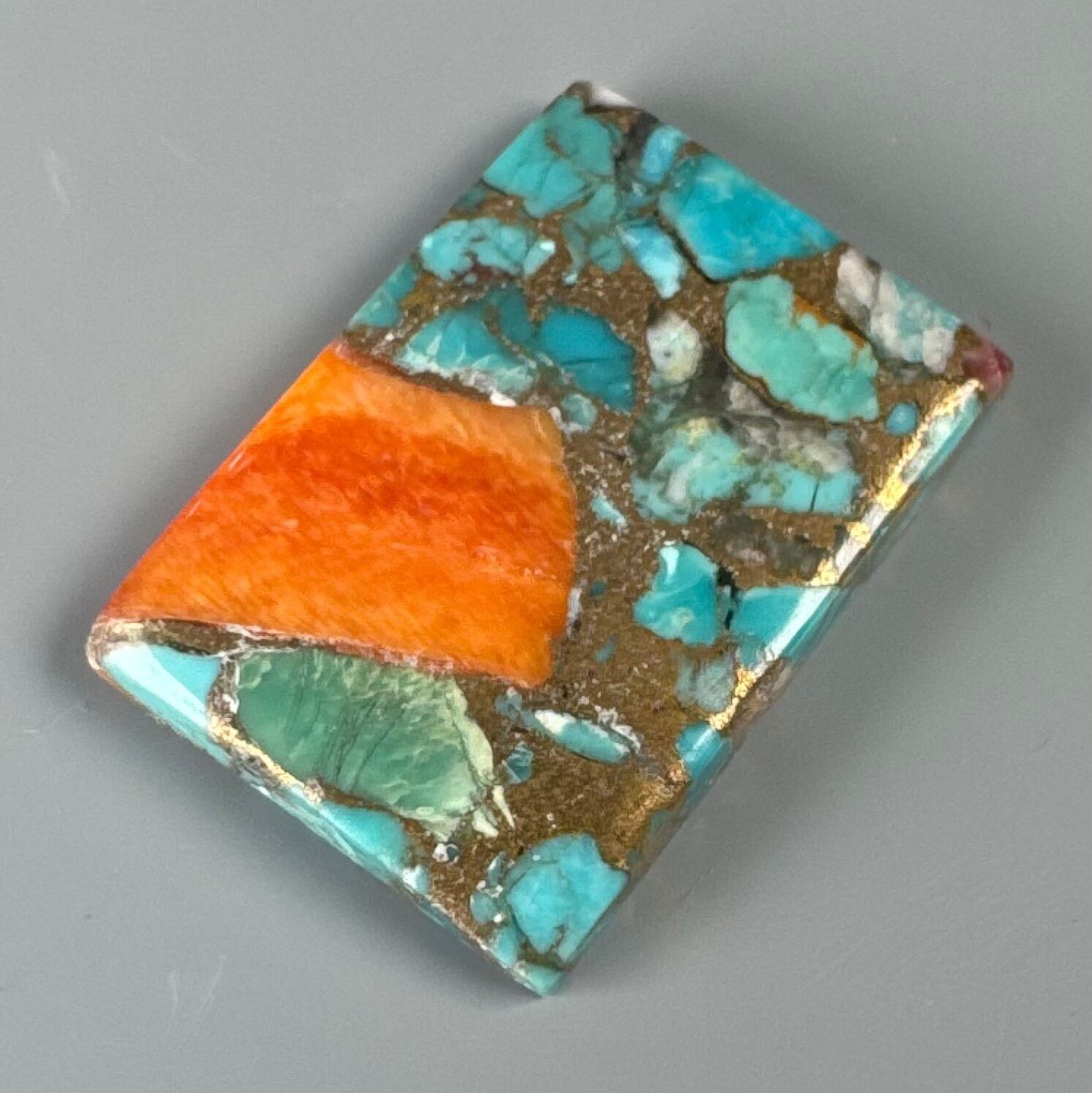 オイスターターコイズは、ターコイズの破片と牡蠣の貝殻、銅(カッパー)を組み合わせ、再構成された特別なストーン。