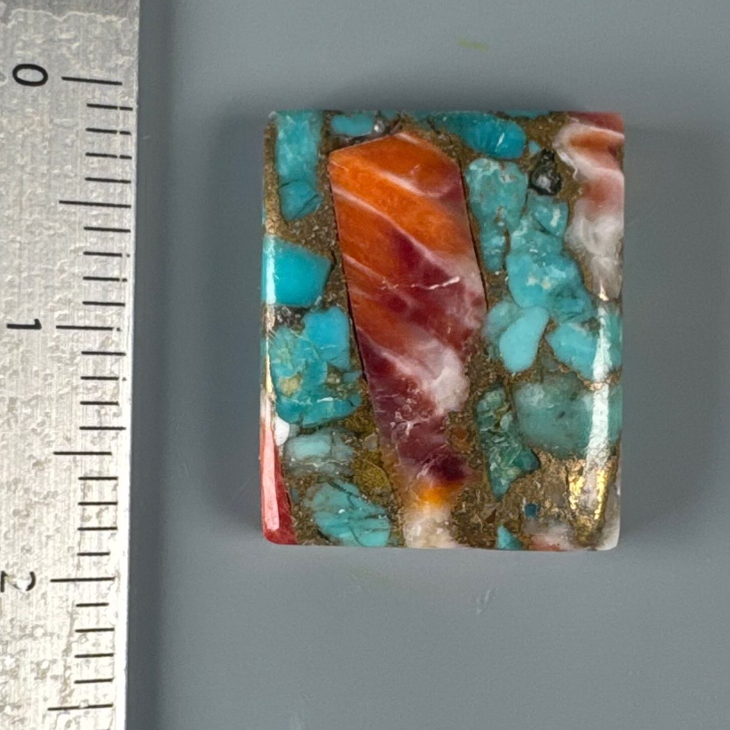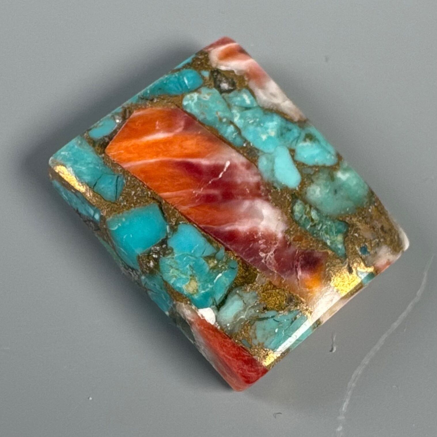 オイスターターコイズは、ターコイズの破片と牡蠣の貝殻、銅(カッパー)を組み合わせ、再構成された特別なストーン。