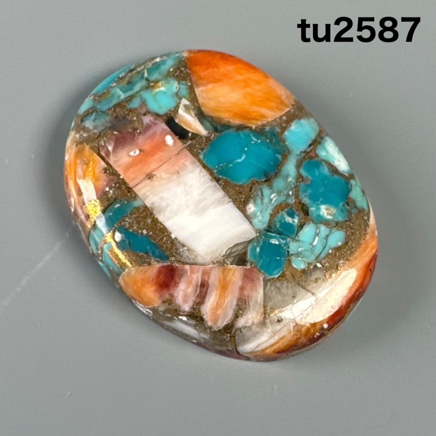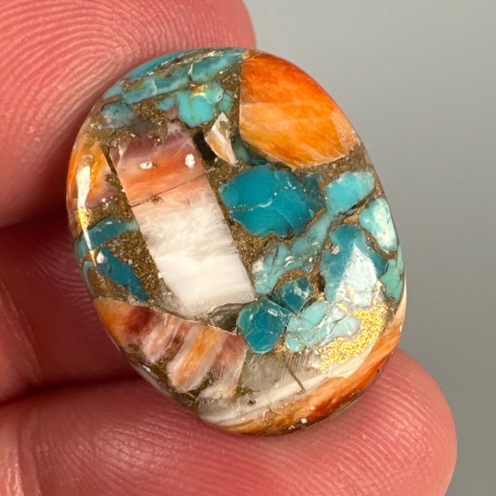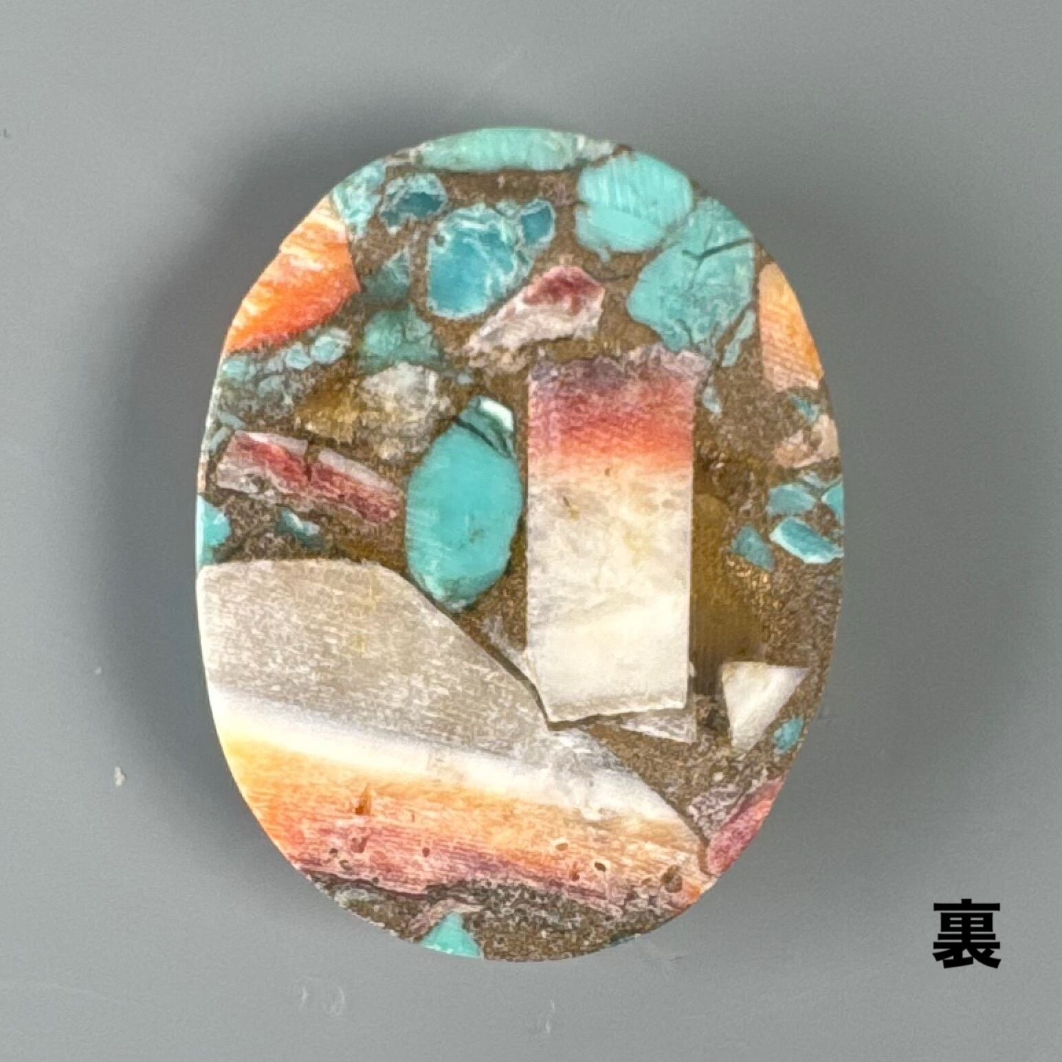 オイスターターコイズは、ターコイズの破片と牡蠣の貝殻、銅(カッパー)を組み合わせ、再構成された特別なストーン。