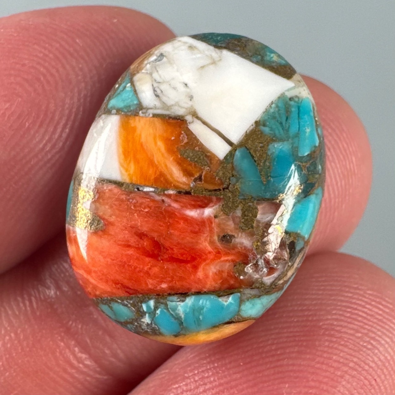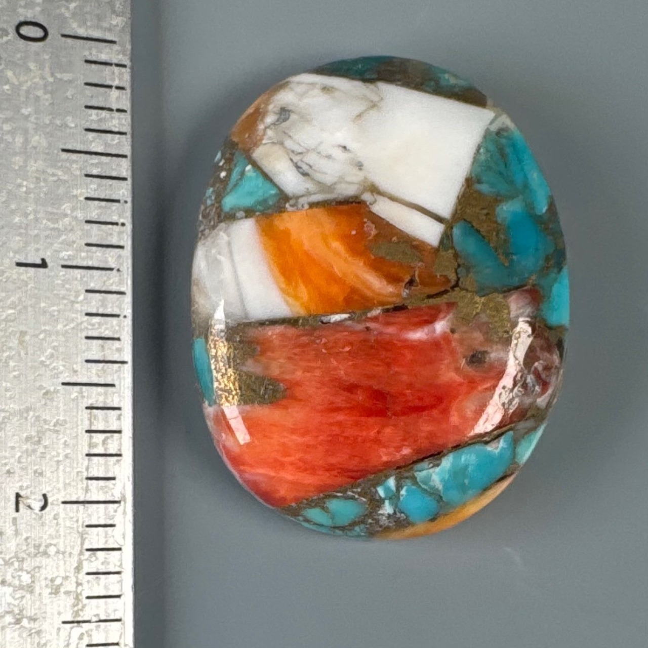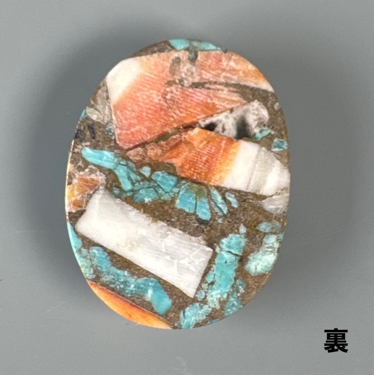 オイスターターコイズは、ターコイズの破片と牡蠣の貝殻、銅(カッパー)を組み合わせ、再構成された特別なストーン。