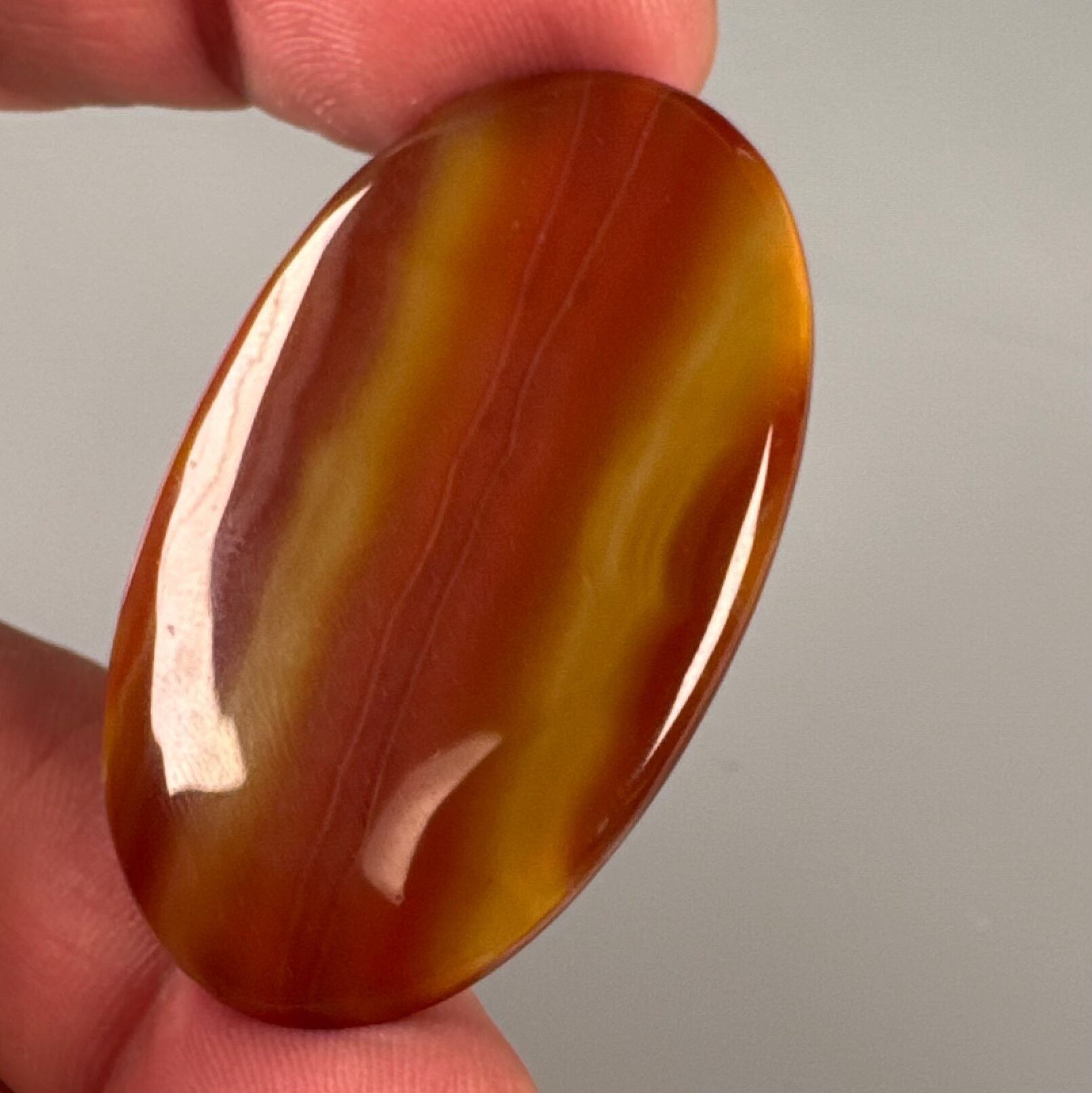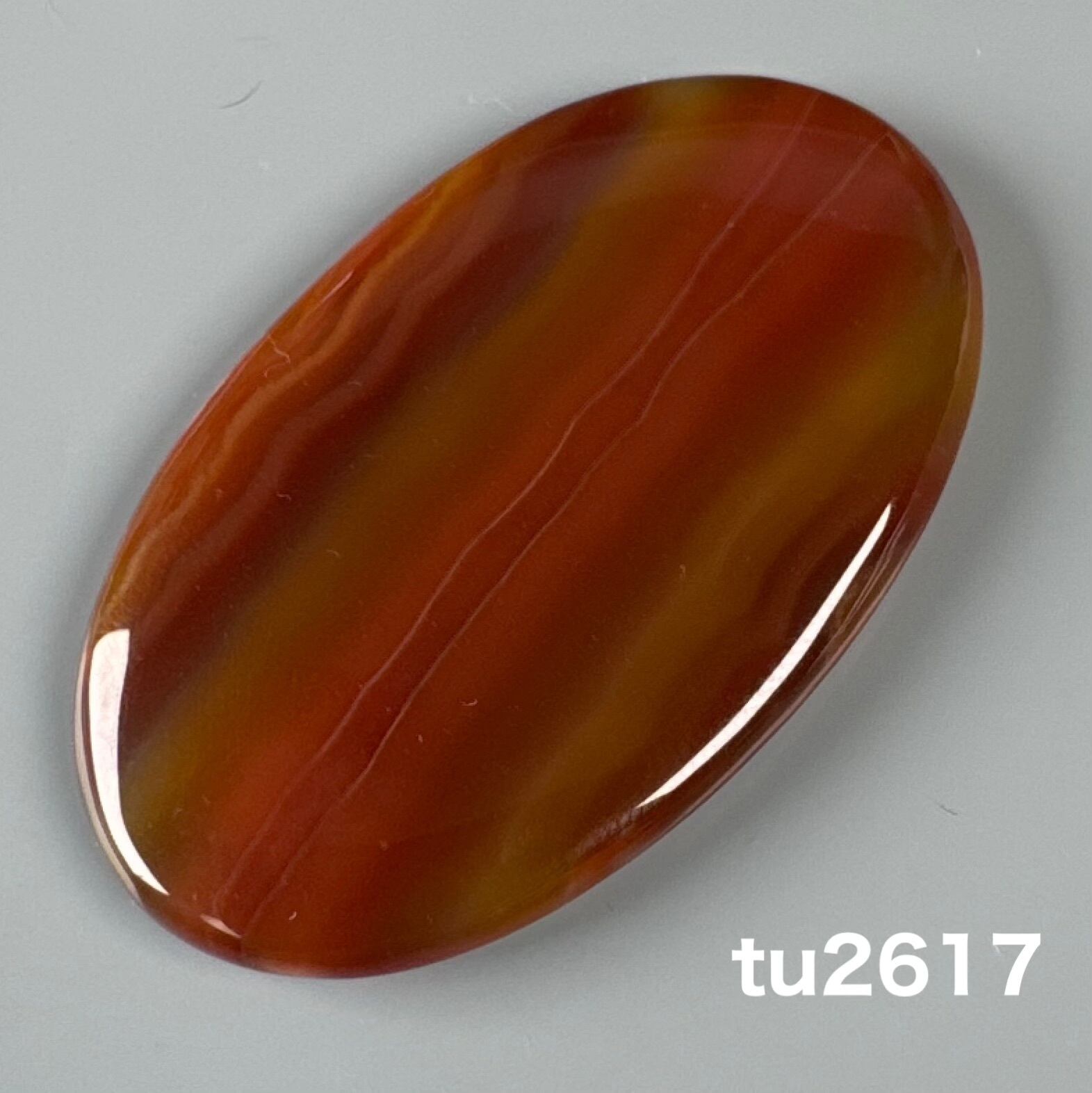 このルースは、赤のライン、透明感あるオレンジ、そして流れるようなグラデーションが特徴的な逸品。