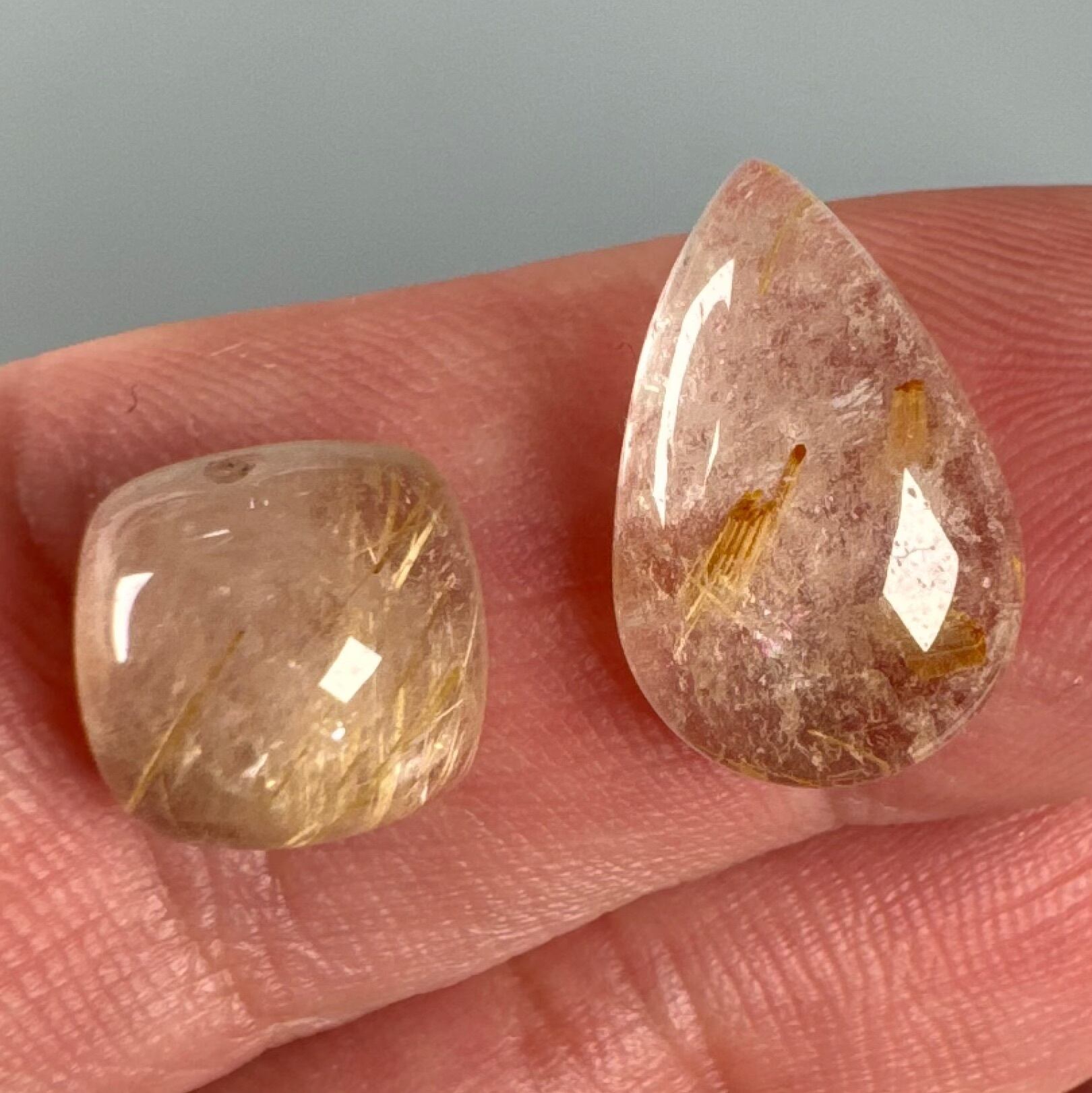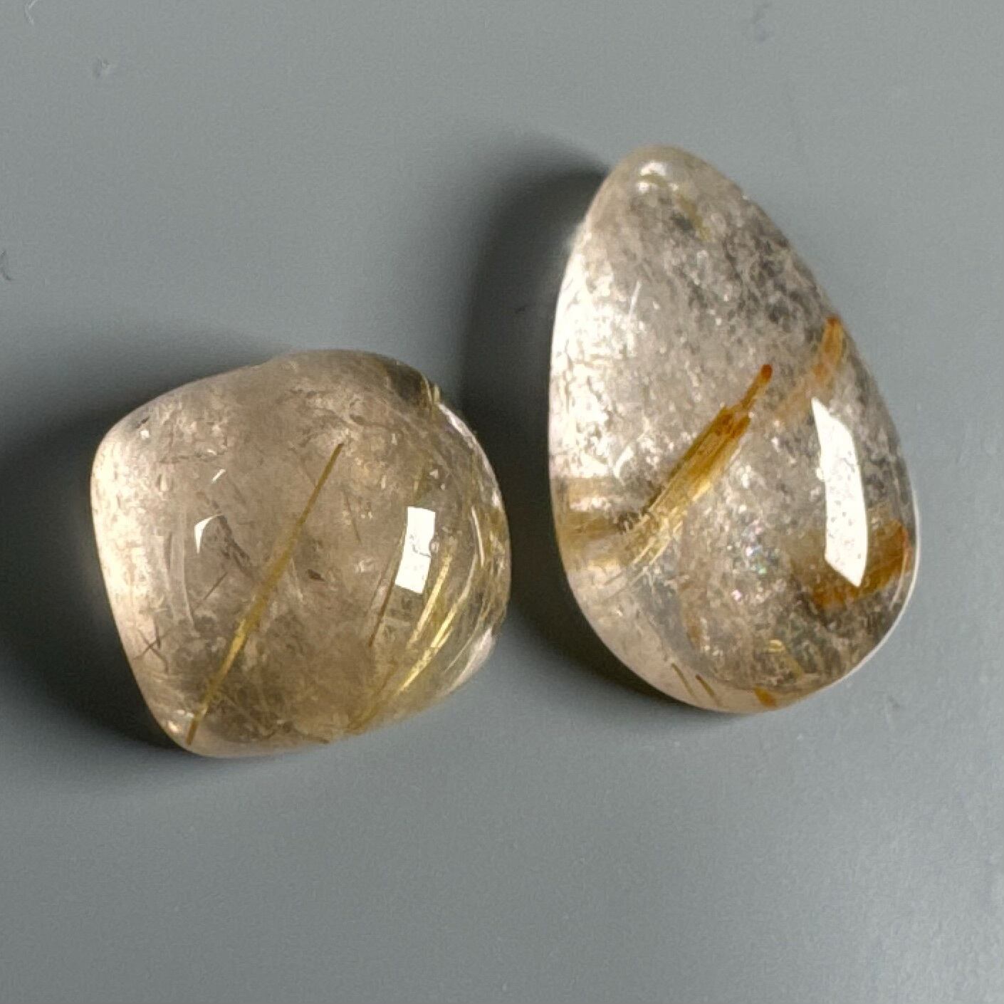 水晶部が曇ったルチルクォーツ ルース2個です。