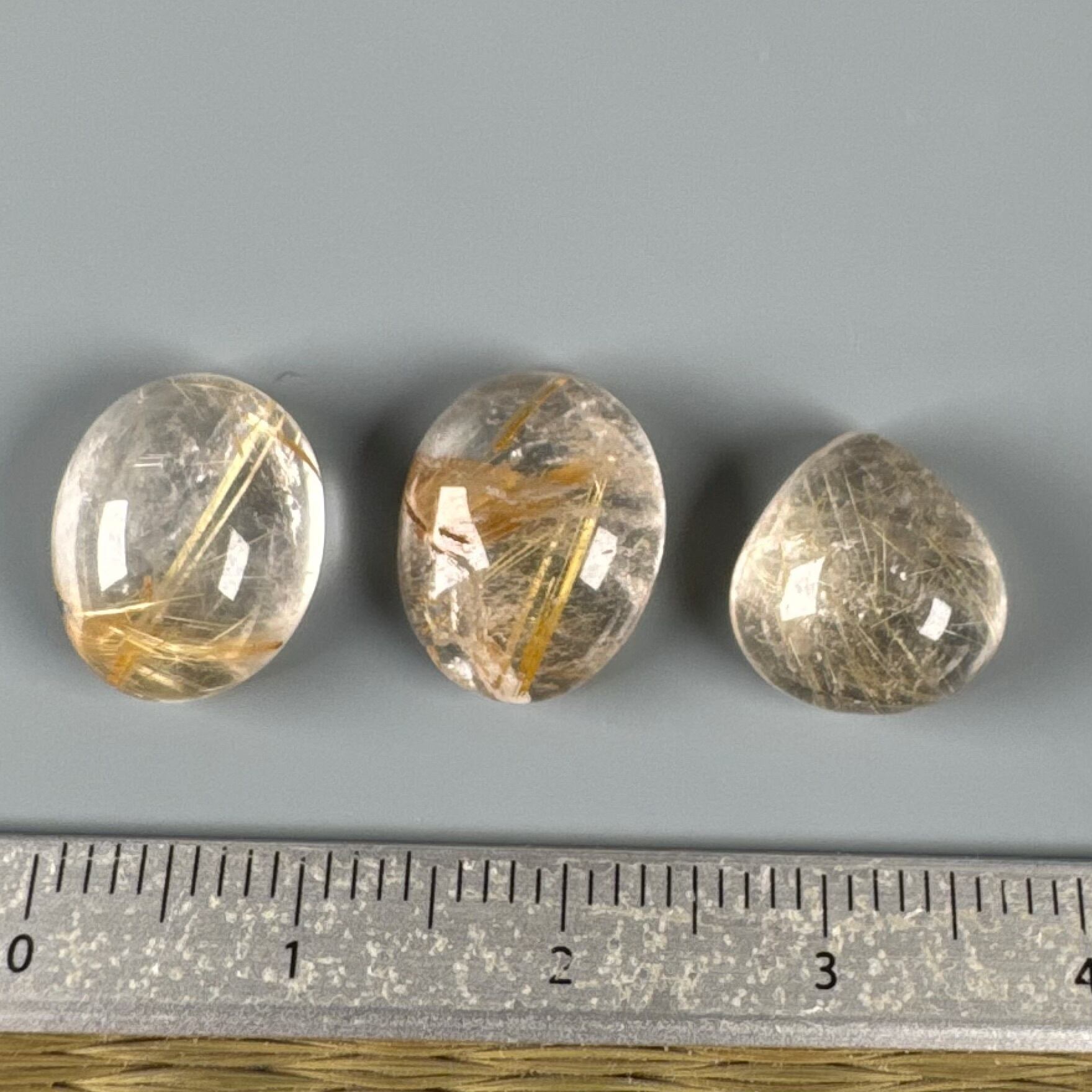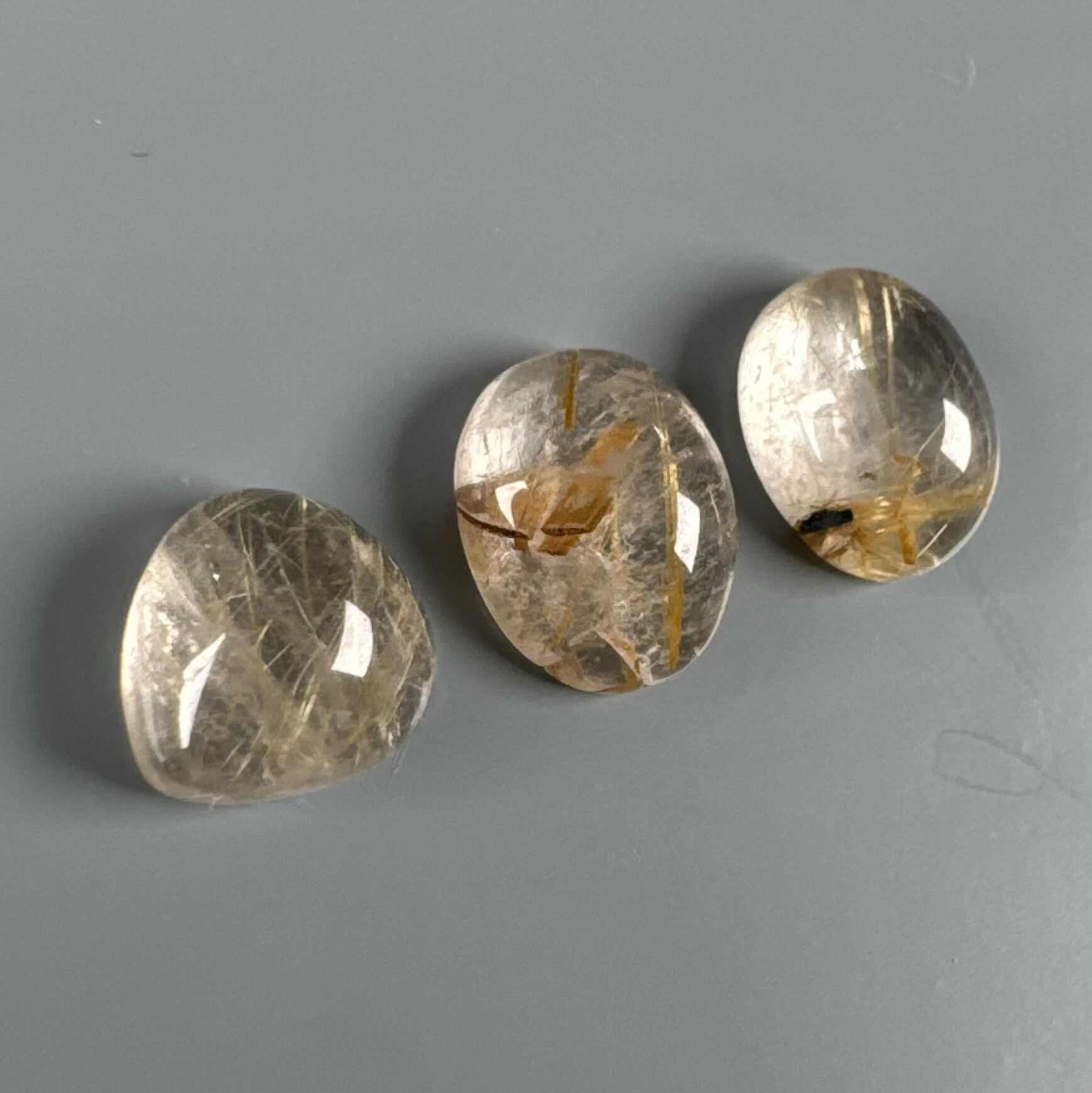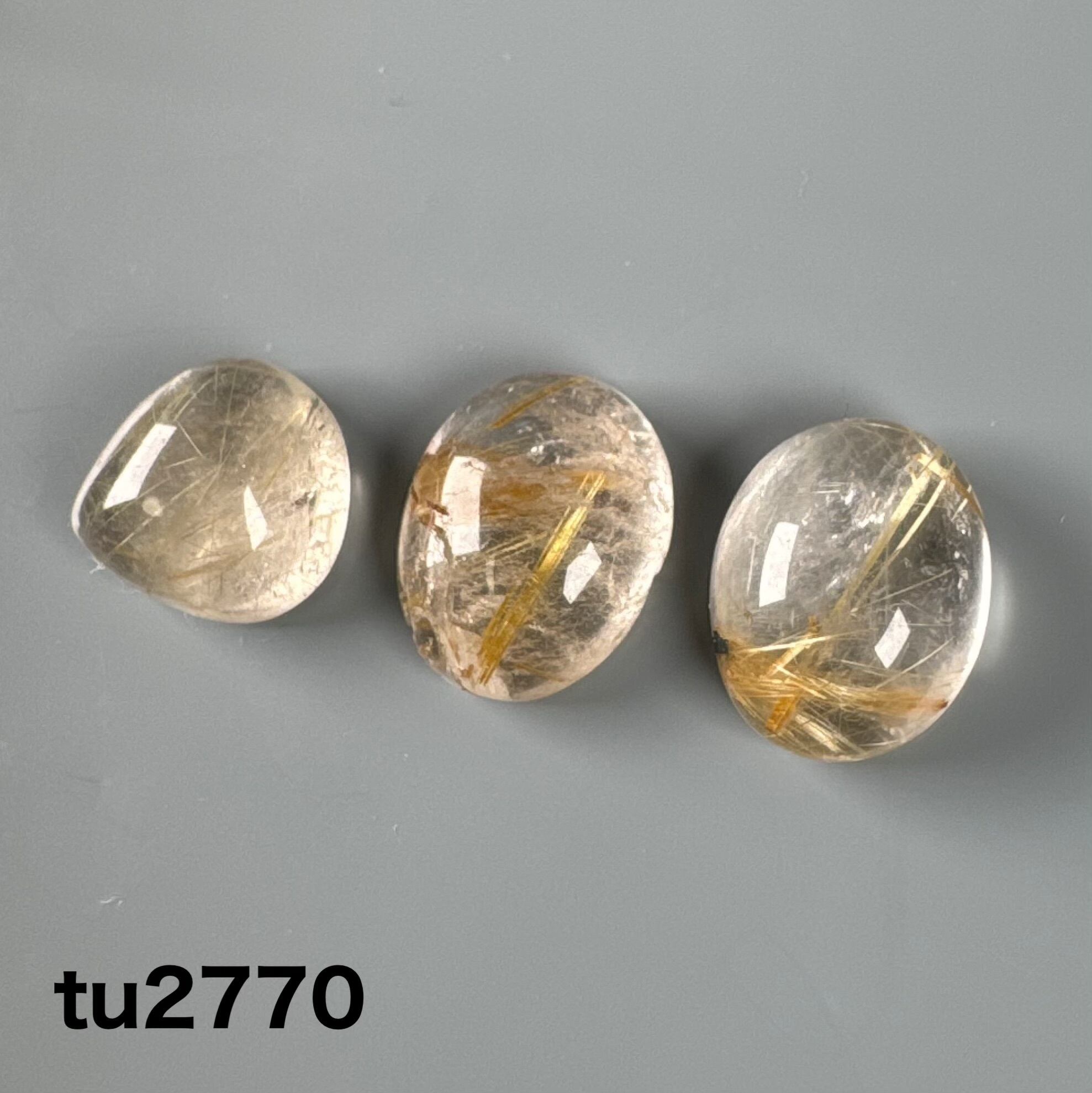 水晶部はまずまずの透明度のルチルクォーツ 小さなルース3個です。