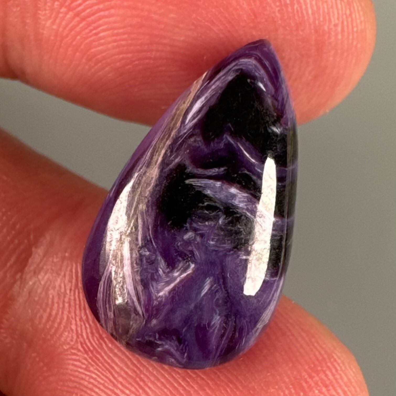 その色合いの濃さは、まさにチャロアイトの中でも特に優れた品質の証。