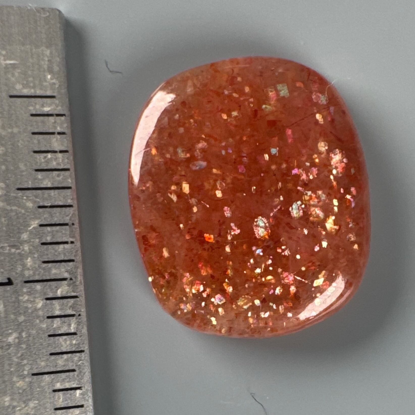 このサンストーンの美しさは、その強い光彩効果と奥行きのある輝きにあります。