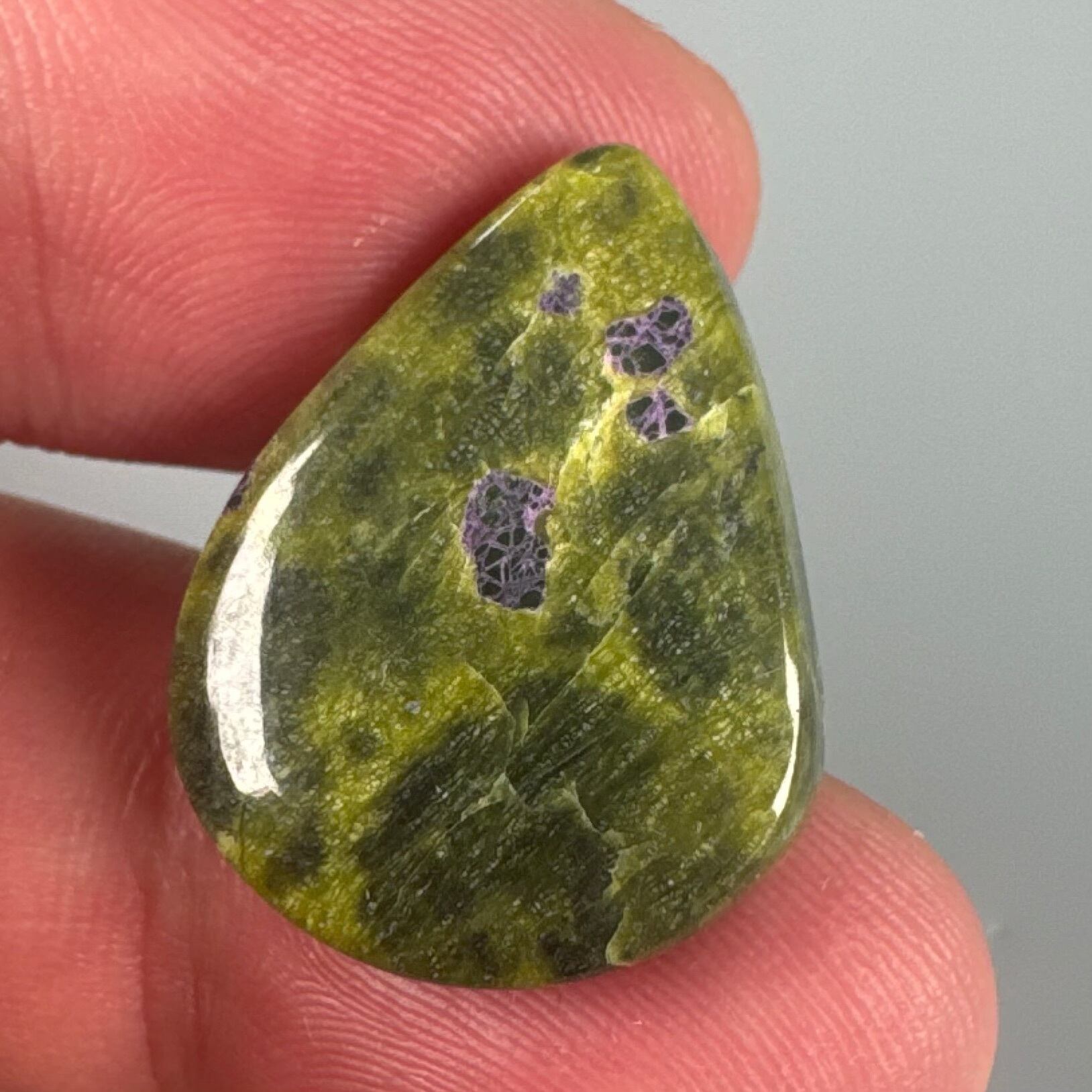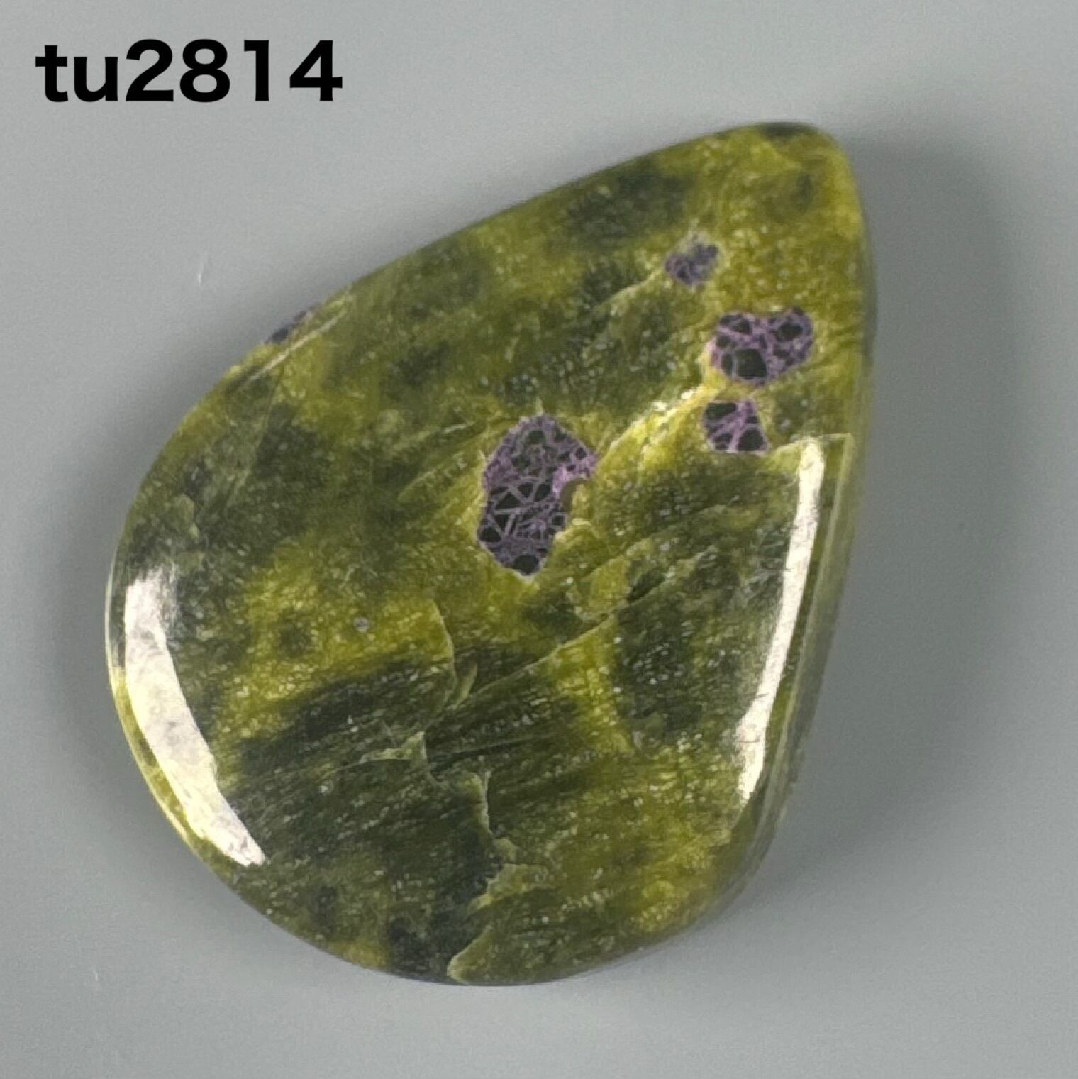 模様はまるでドラクエの荒野に紫の毒の沼があるように見える模様の天然石です。