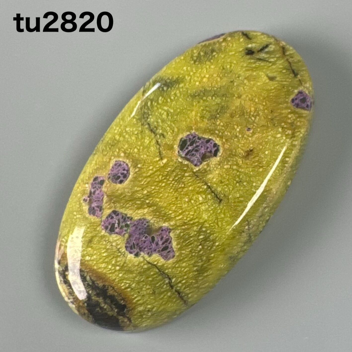 模様はまるでドラクエの荒野に紫の毒の沼があるように見える模様の天然石です。