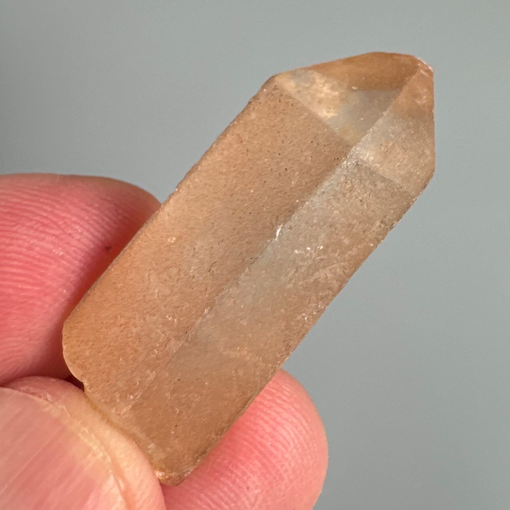 こちらはレッドタイプと呼ばれる鉄成分のせいで赤味がかった原石ポイントです。