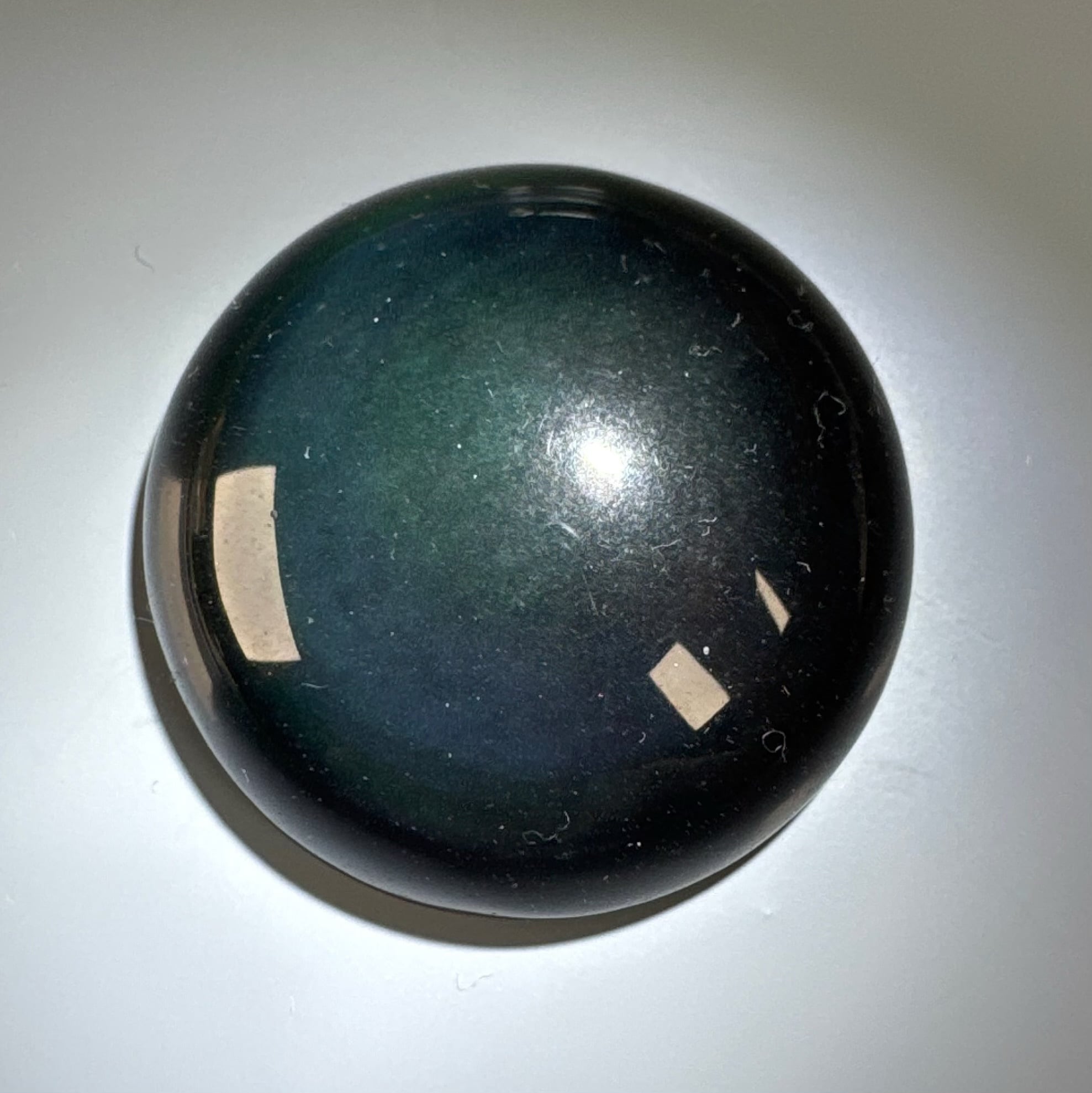 強い光で緑、紫に反射するオブシディアンです。