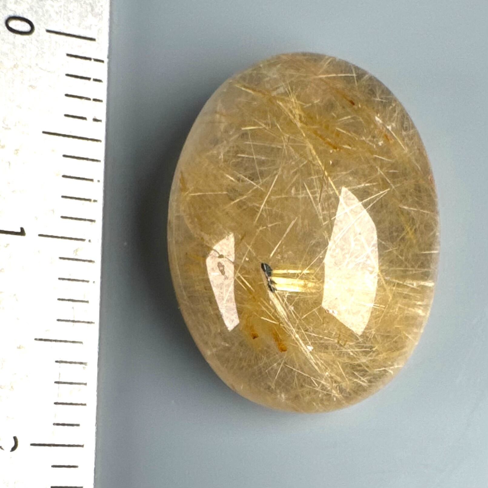 水晶部は濁っているものの優しい針のルチルクォーツ ルースです。