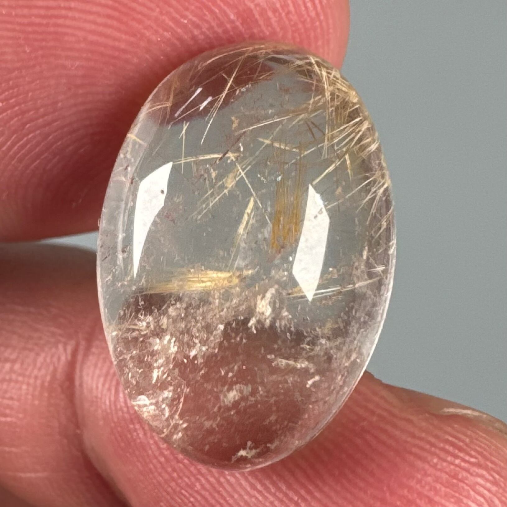 水晶部はまずまずの透明感、優しい針のルチルクォーツ ルースです。