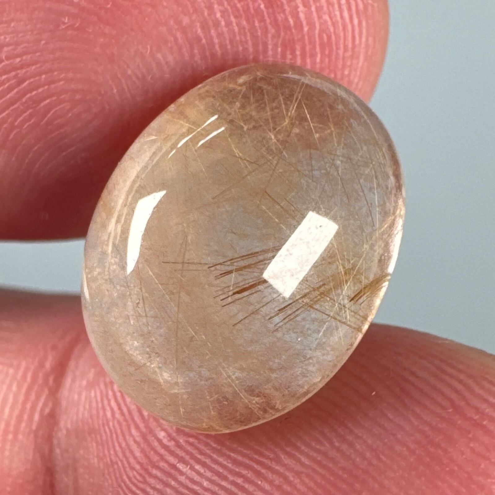 水晶部は濁って、優しい針のルチルクォーツ ルースです。