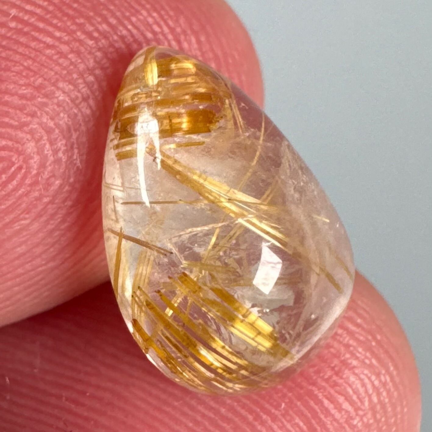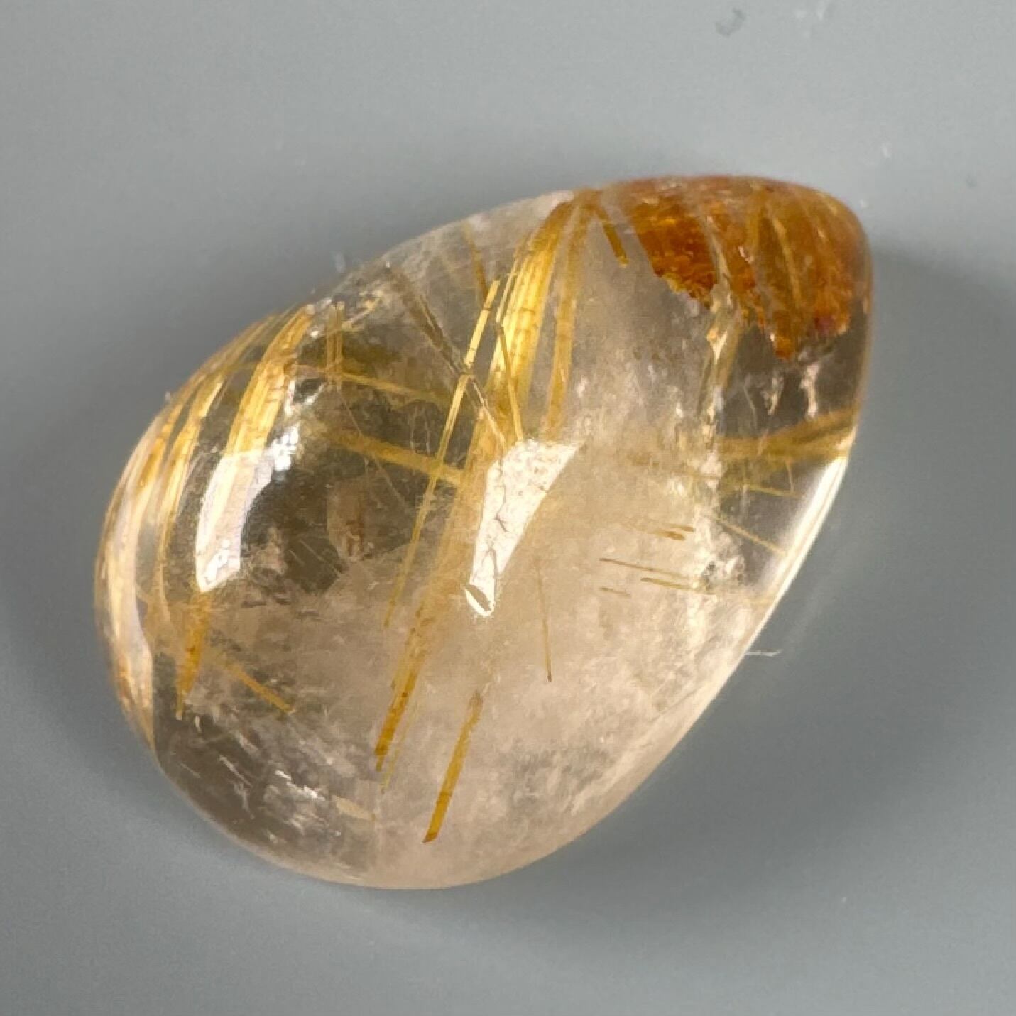水晶部は濁って、明るい針のルチルクォーツ ルースです。