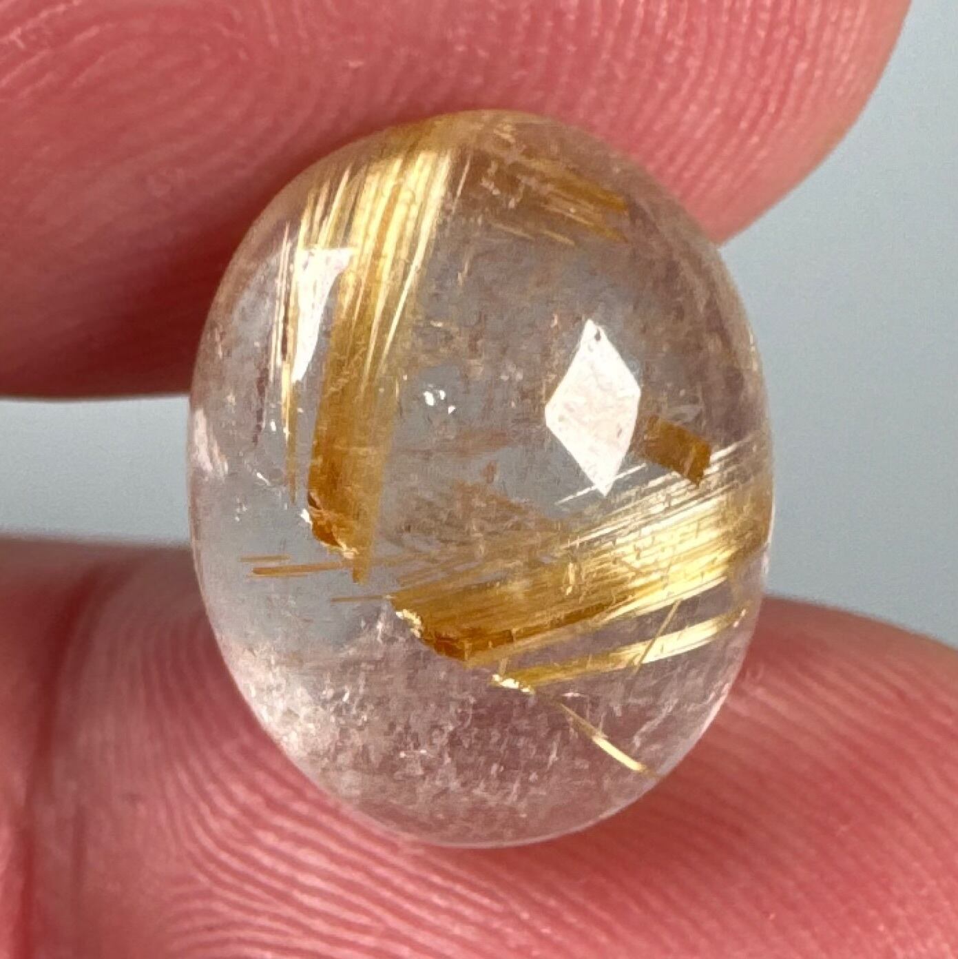 水晶部は濁りもありますが、明るい針のルチルクォーツ ルースです。