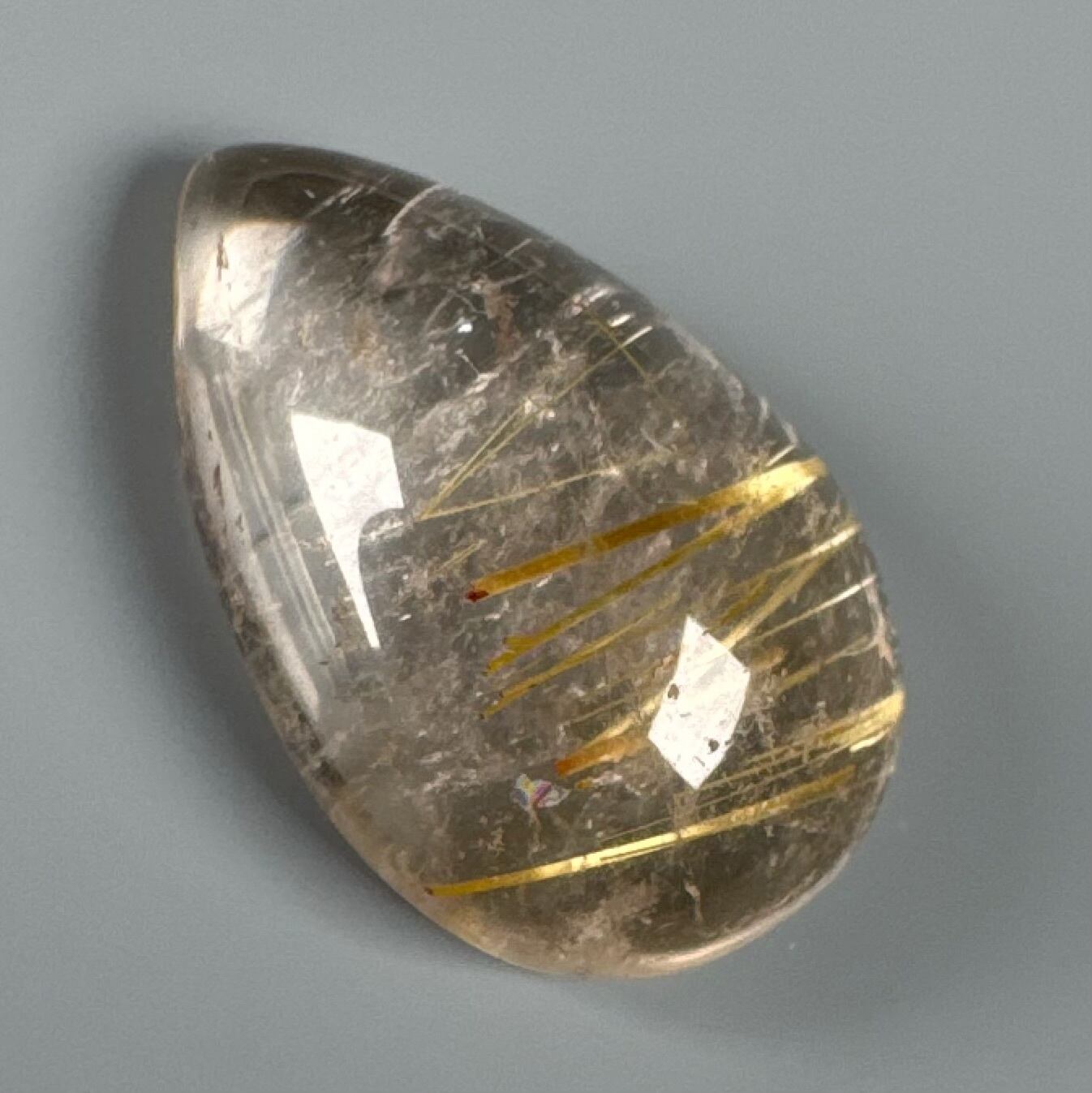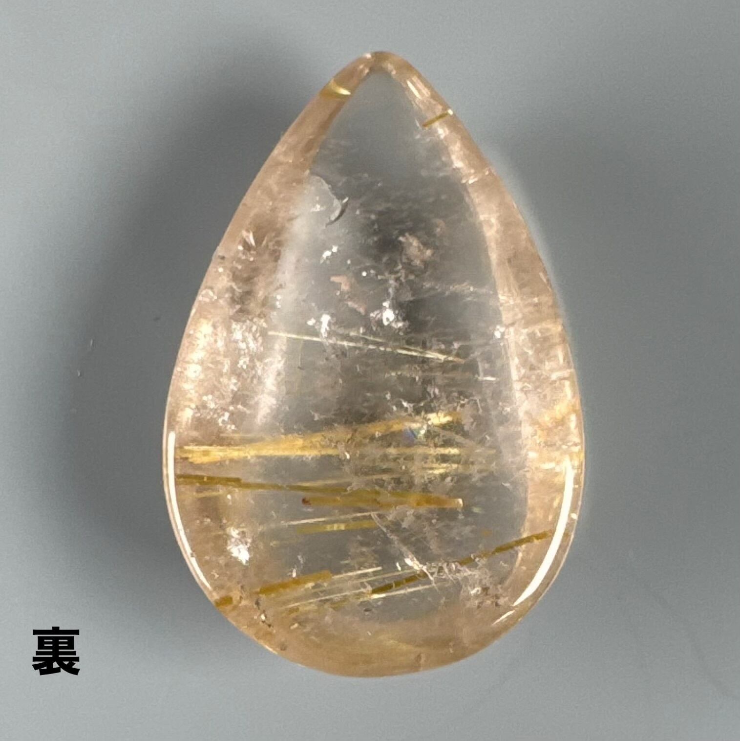 水晶部は濁って、優しい針のルチルクォーツ ルースです。