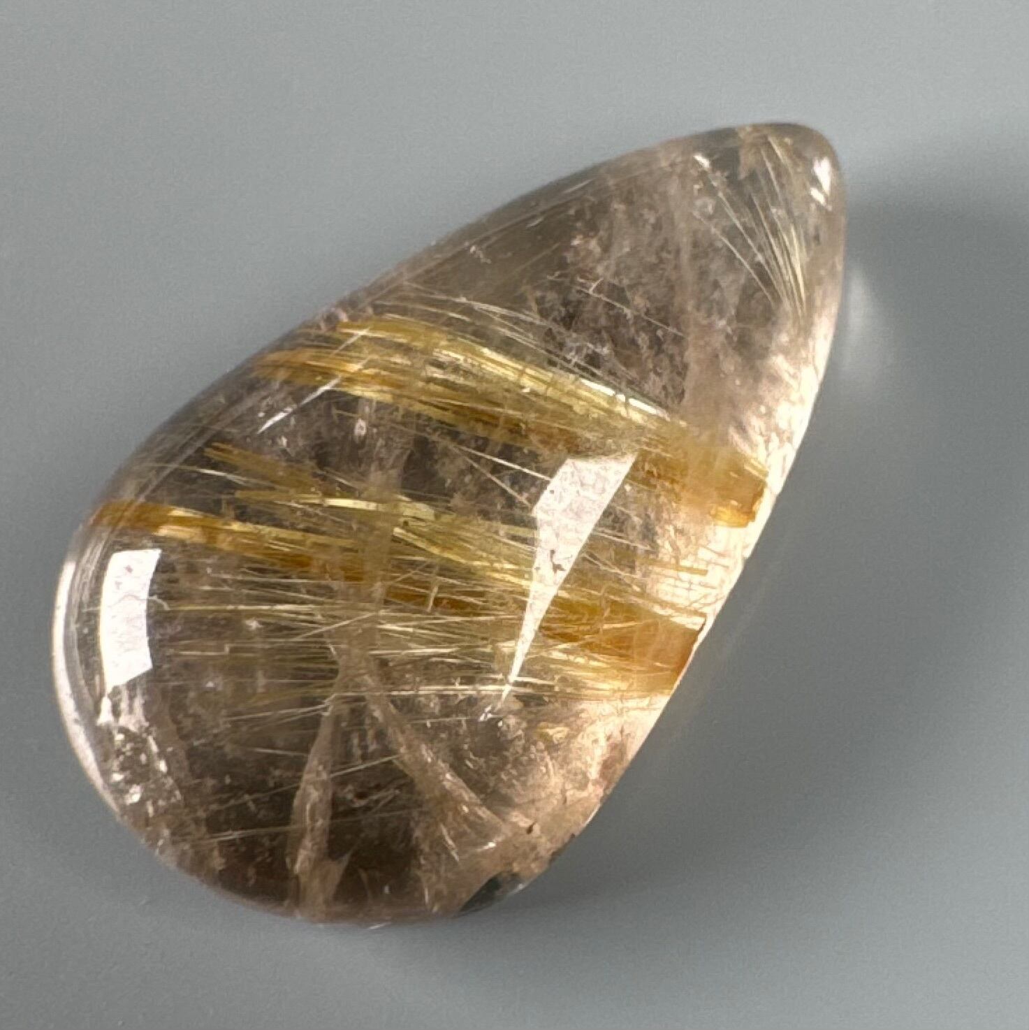 水晶部は濁って、スモーキーがかっているルチルクォーツ ルースです。