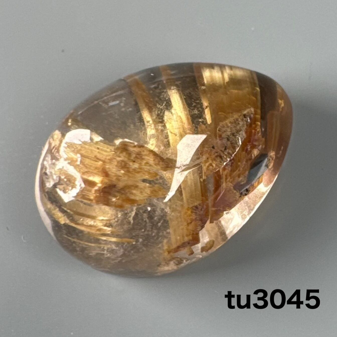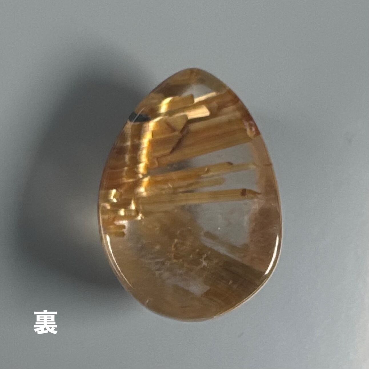 水晶部は濁って、ゴールドの針が見られるルチルクォーツ ルースです。