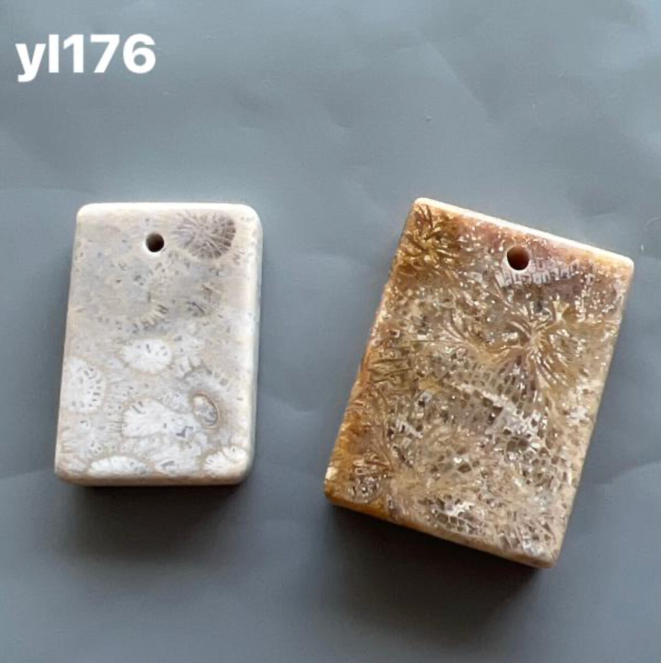 フォッシルコーラル 穴あき レクタグル 2個セット yl176