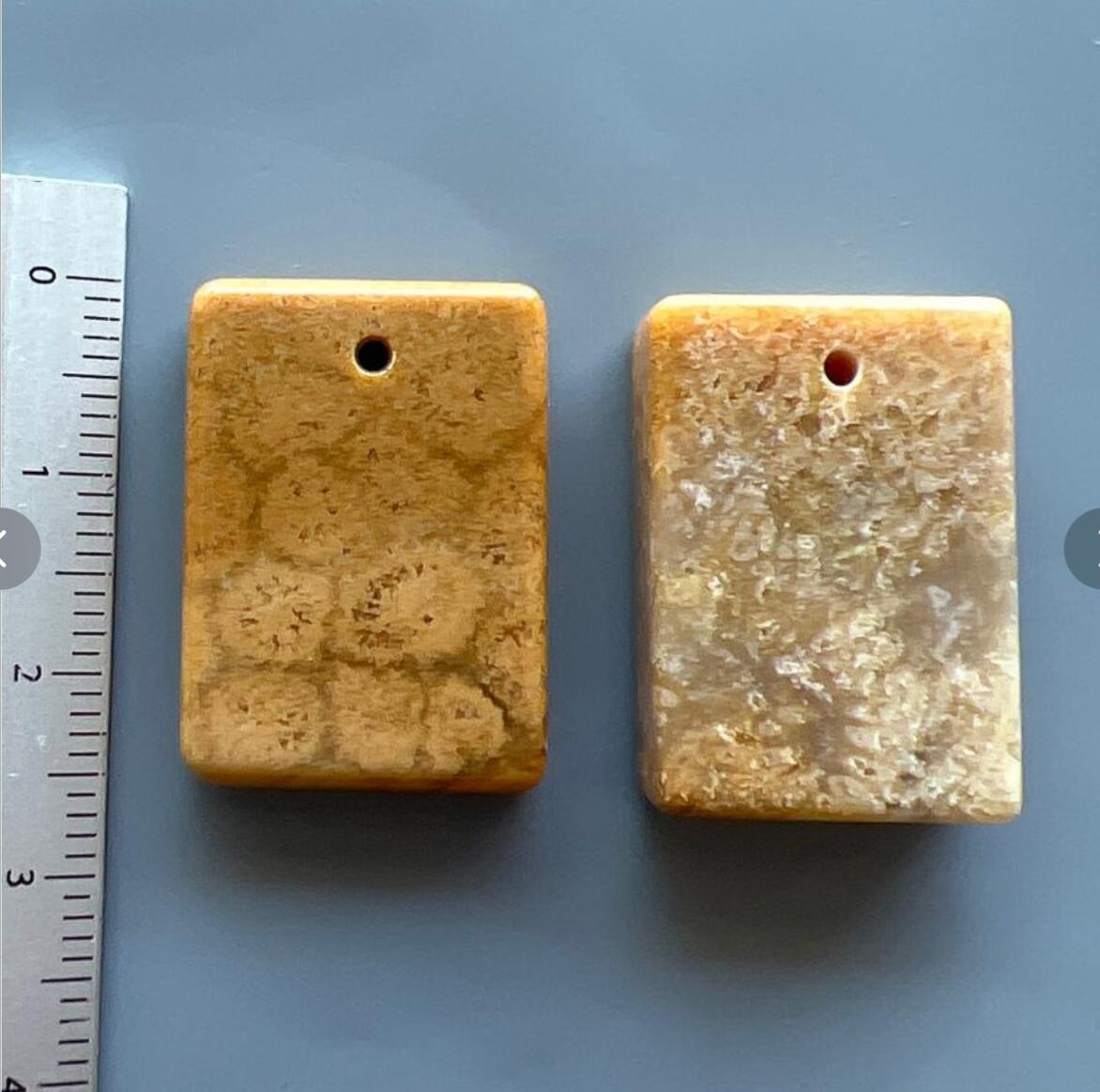 フォッシルコーラル 穴あき レクタグル 2個セット yl178