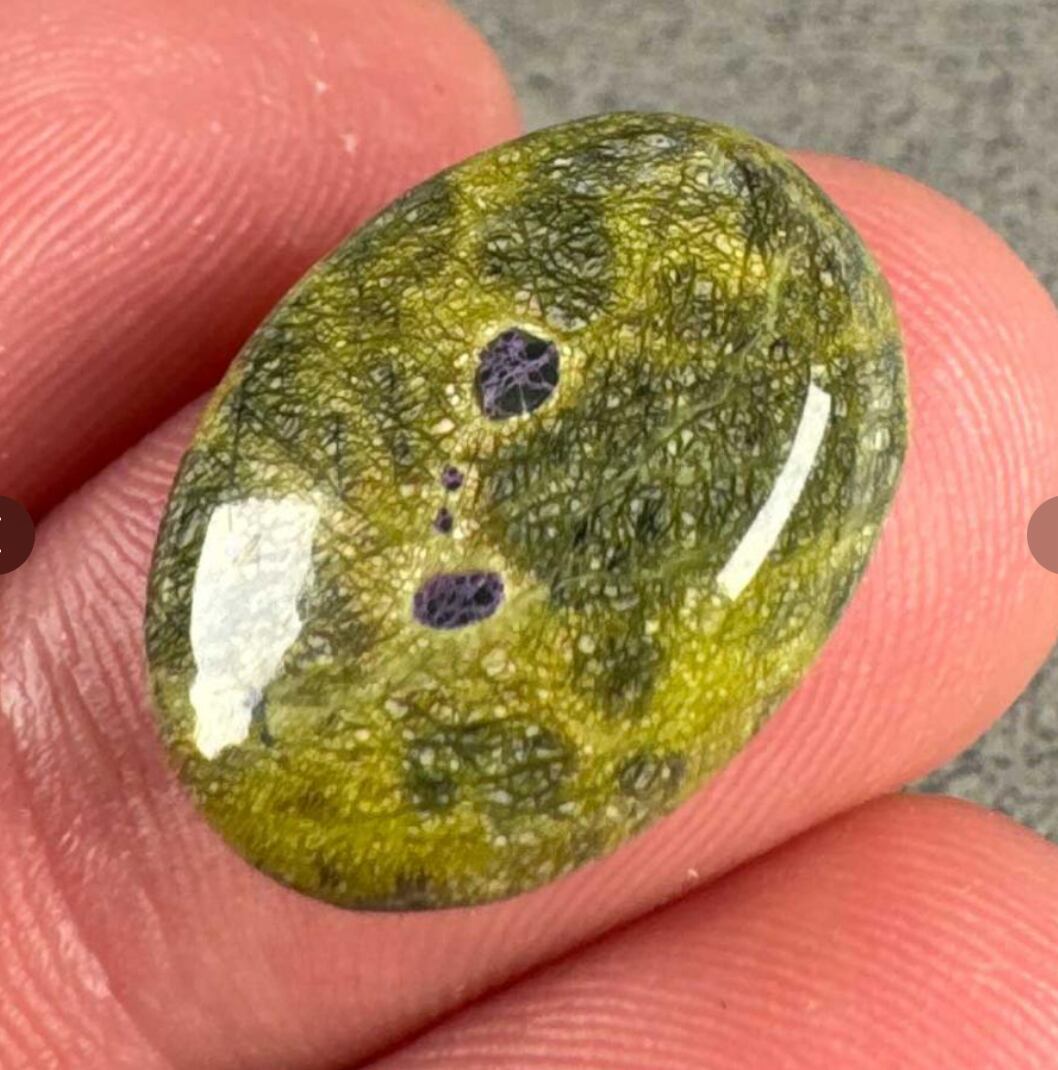模様はまるでドラクエの荒野に紫の毒の沼があるように見える模様の天然石です。