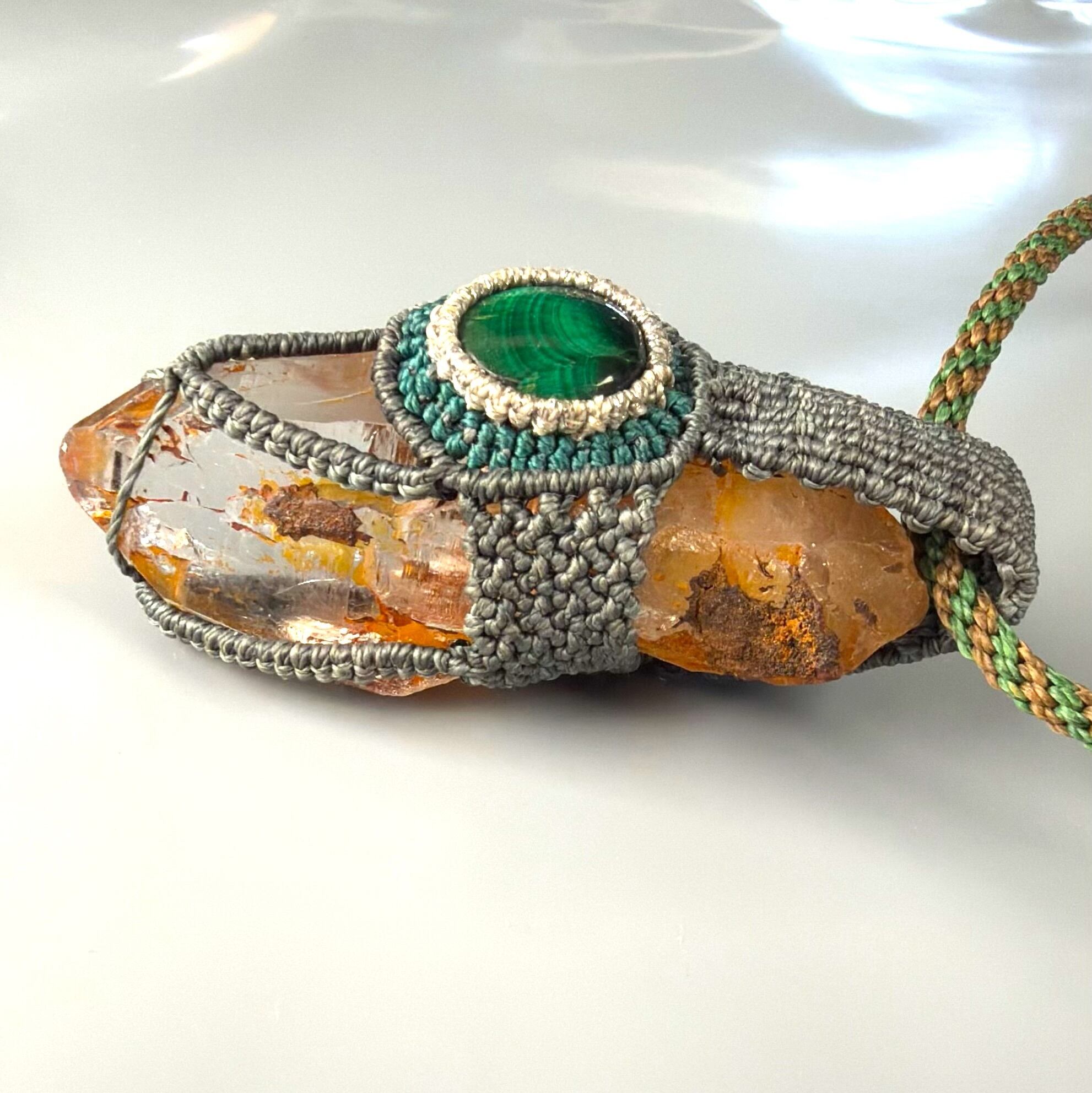 ガネーシュヒマール産レッドクォーツ × ベルベットマラカイト 癒しのタリスマン AR03