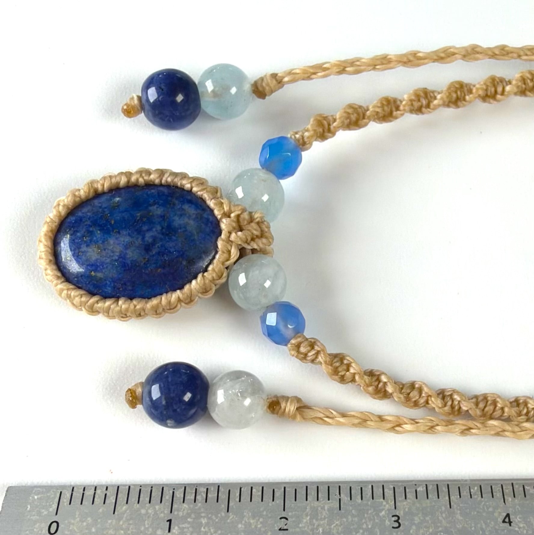 マクラメネックレス ラピスラズリ × アクアマリン × ブルーカルセドニー ma375