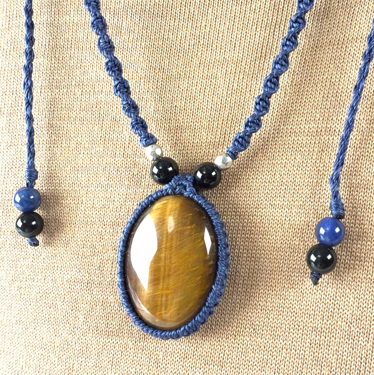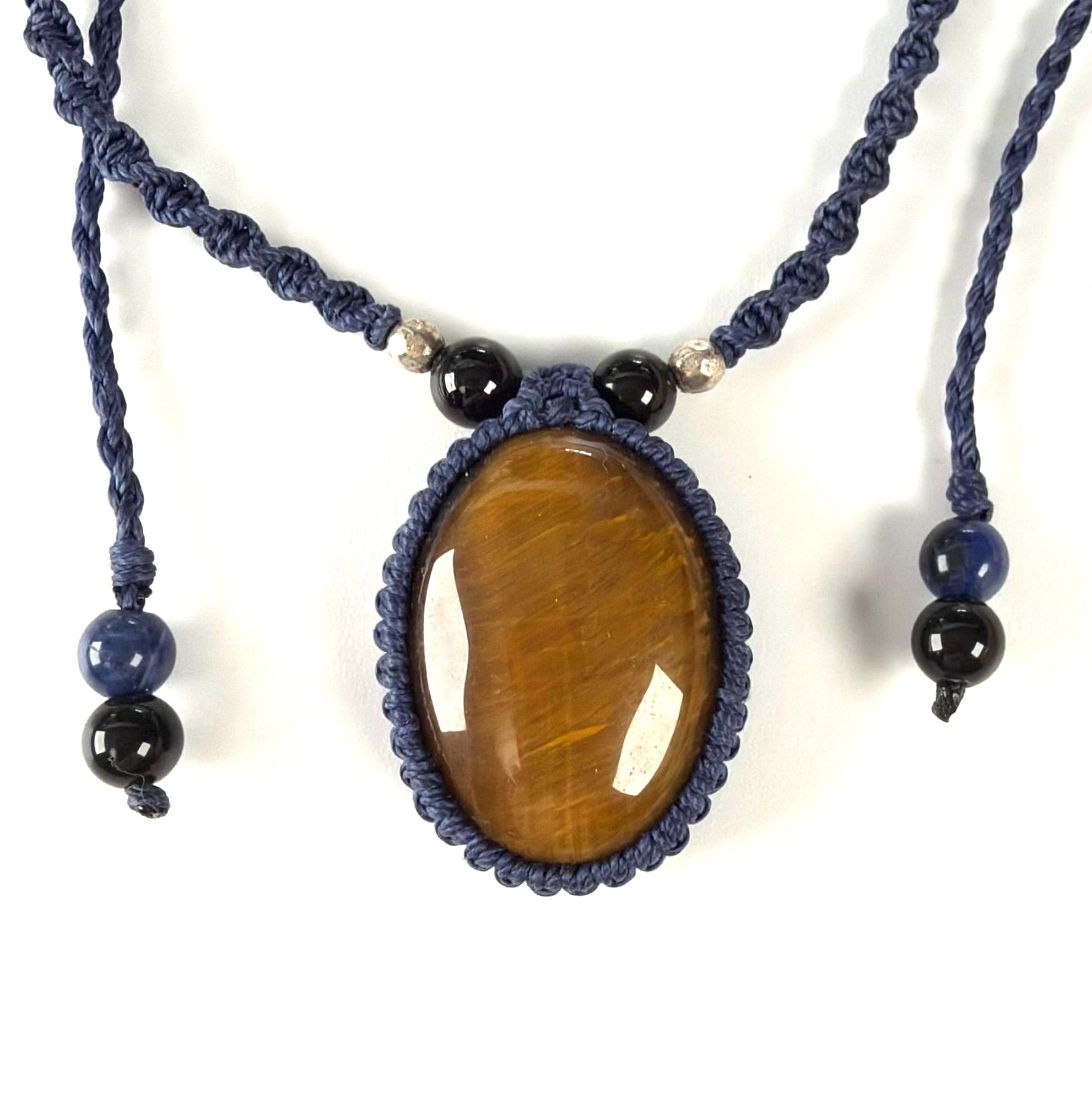 マクラメネックレス タイガーアイ × オニキス × ソーダライト ma377